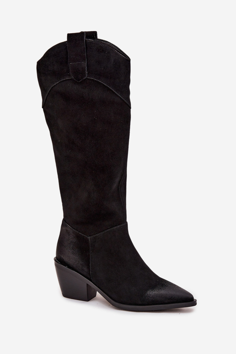 Damen Cowboy-Stil lange Stiefel mit Absatz aus echtem Wildleder Artiker 57C0232 in Schwarz