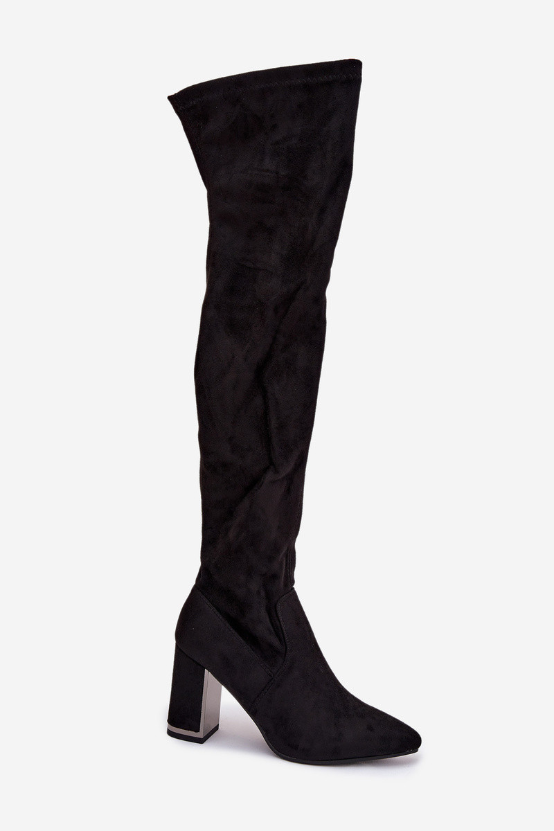 Schwarze Damen Overknee-Stiefel mit Absätzen aus Kunstwildleder Thamine