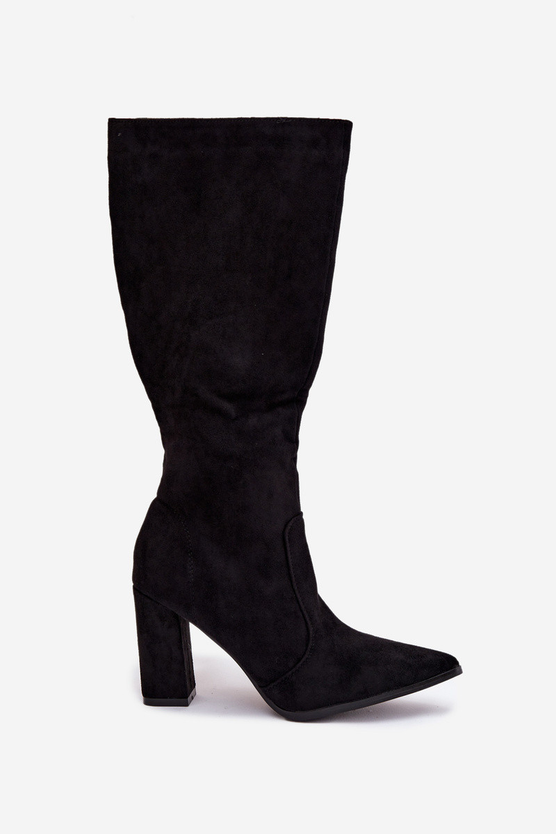Schwarze warme Damen Stiefel mit Absätzen aus Kunstwildleder Įjungtarille