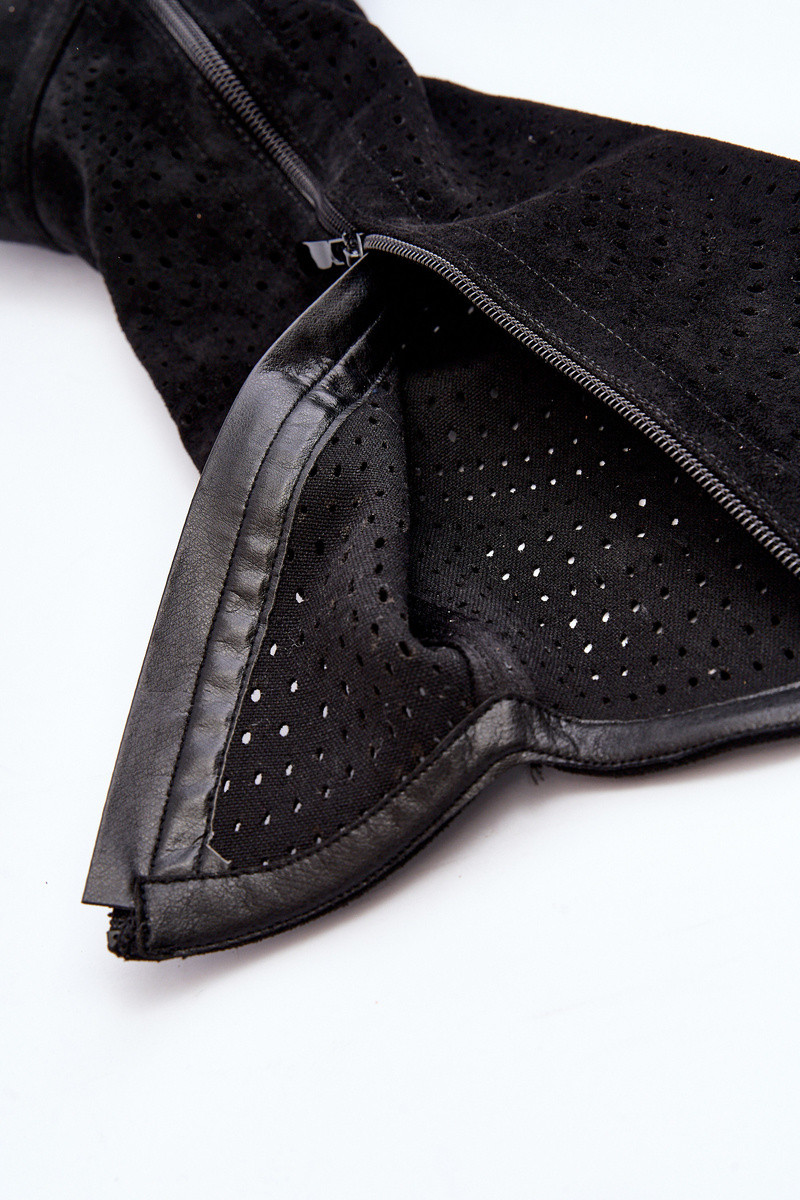 S.Barski HY66-150 mit durchbrochenen Elementen Stiefel mit breiten Absätzen schZuarze Farbe