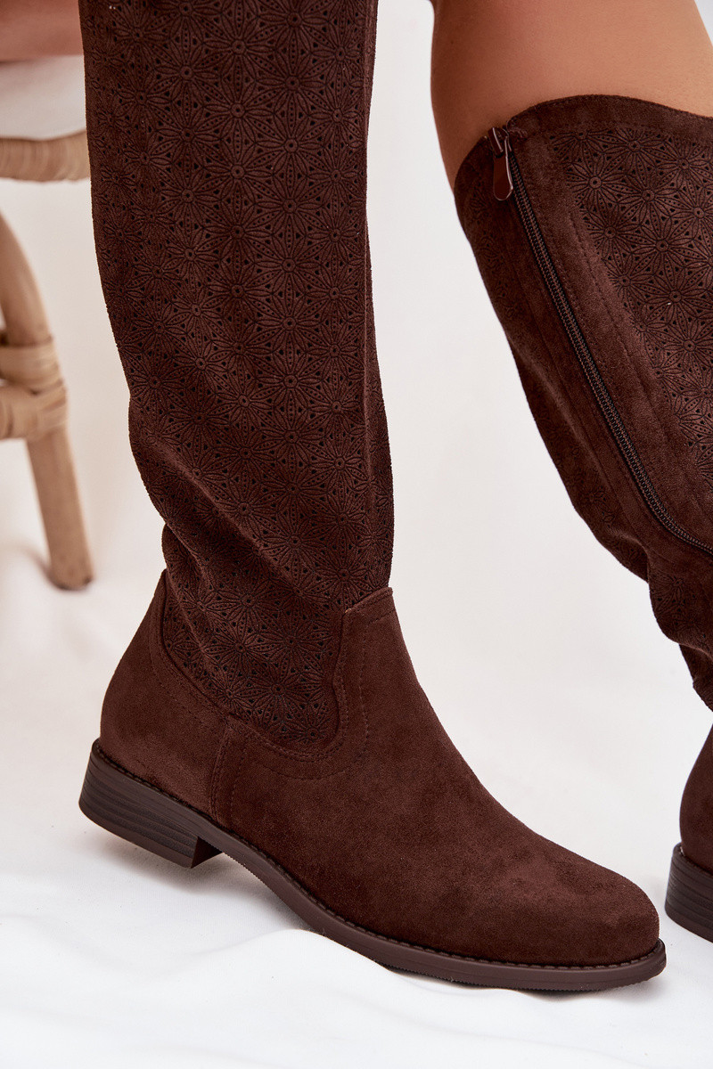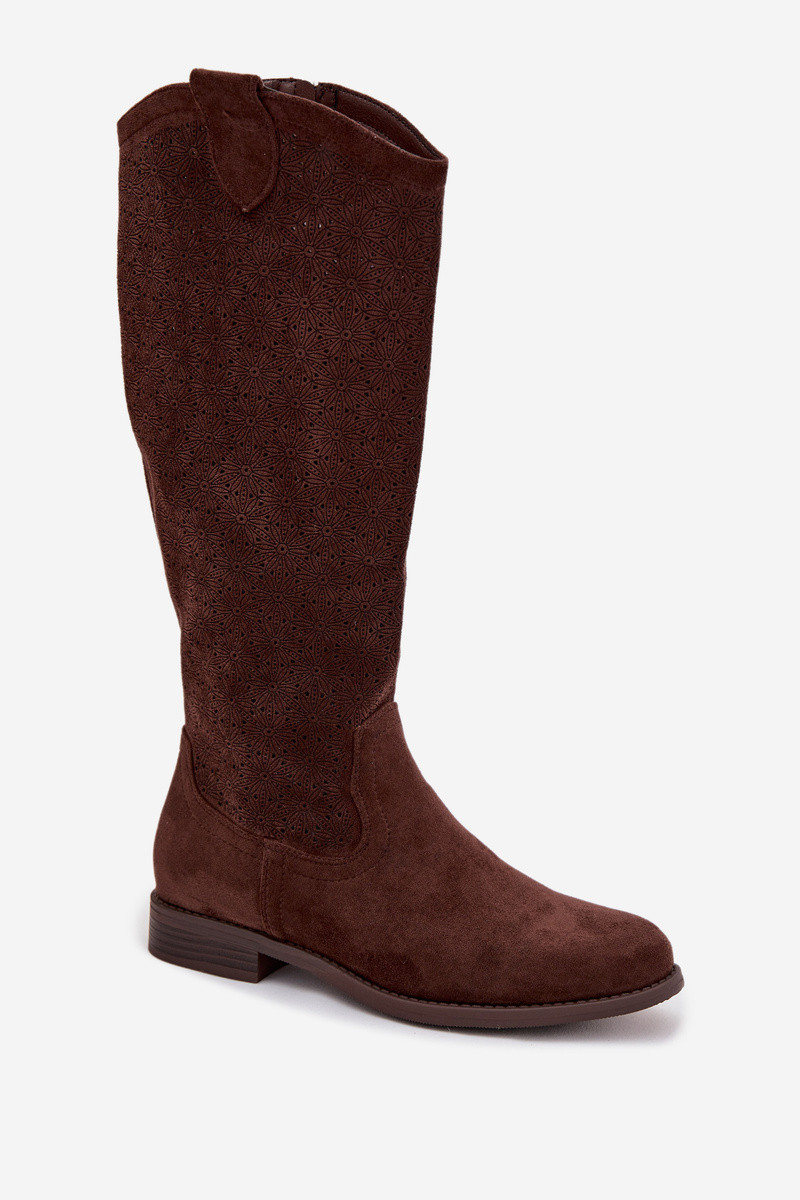 Damenstiefel mit durchbrochenen Elementen mit breiten Absätzen S.Barski HY61-8022 CzekoladoZue
