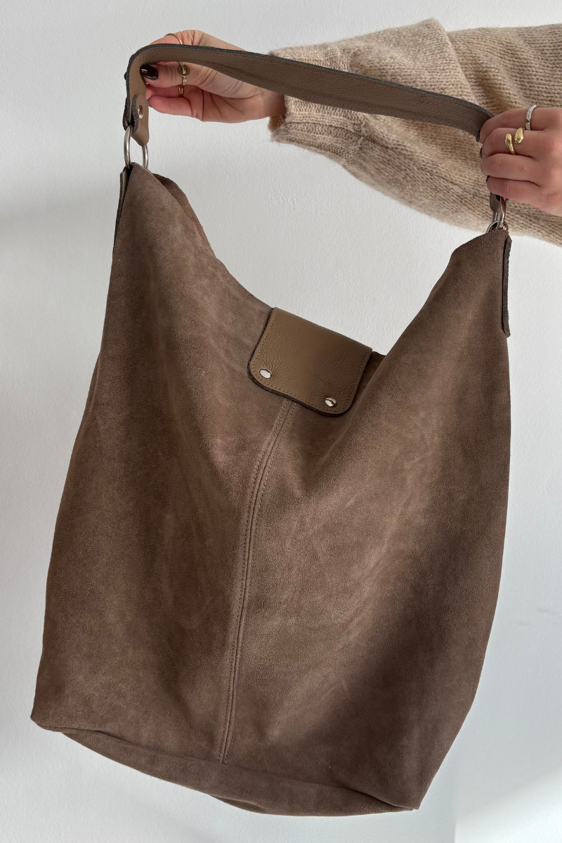 Große dunkelbeige Kunstwildledertasche Hanelle