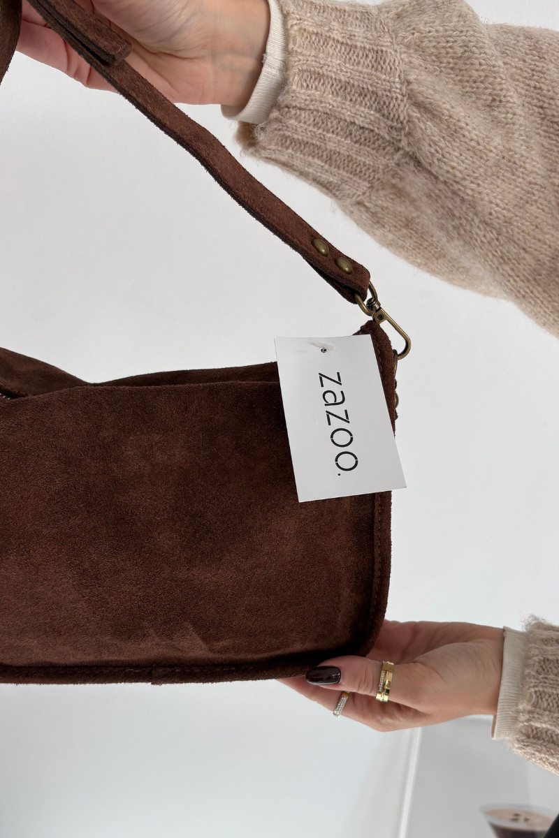 Ziegenleder Handtasche mit Bergkristallen, braun Savra