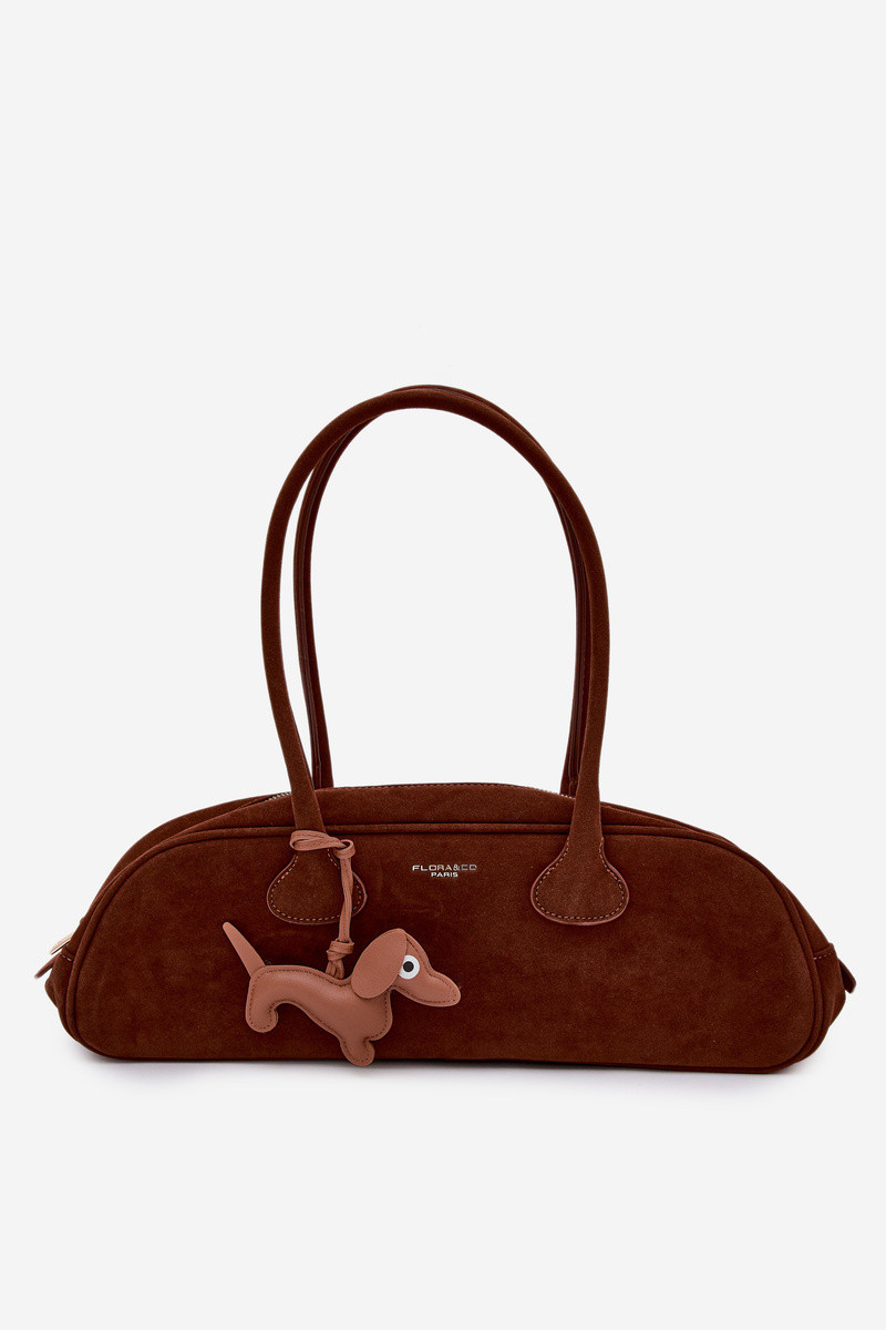 Baguette-Tasche mit Verschluss aus Wildlederimitat in braun Annette