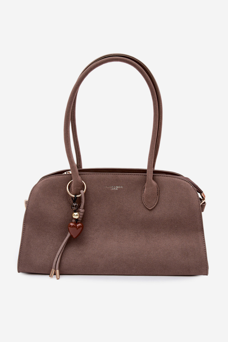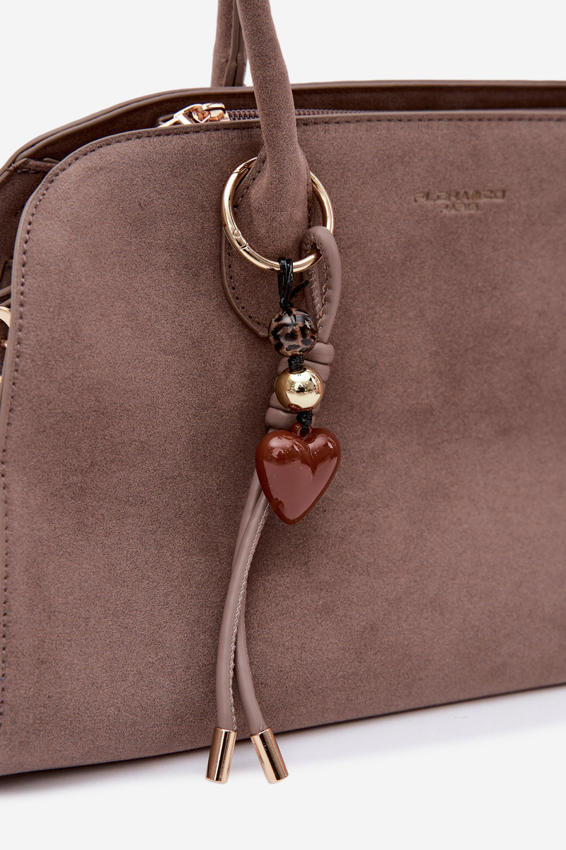Tasche mit Anhänger und Schnallen aus Kunstsuede in dunkelbeige Violette
