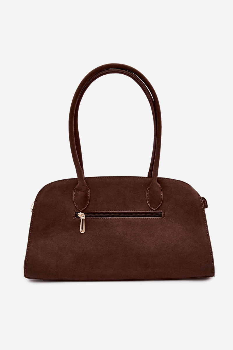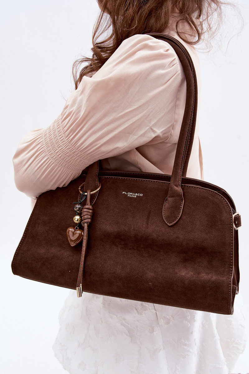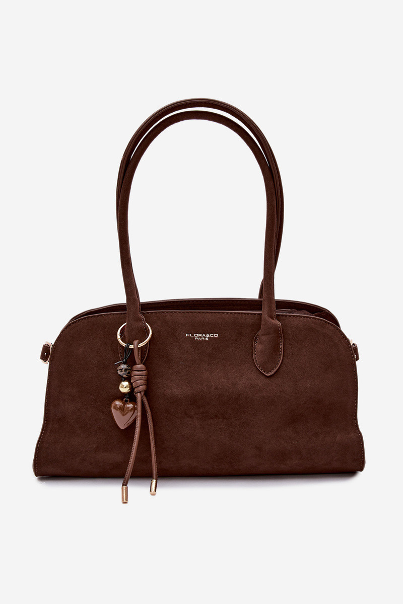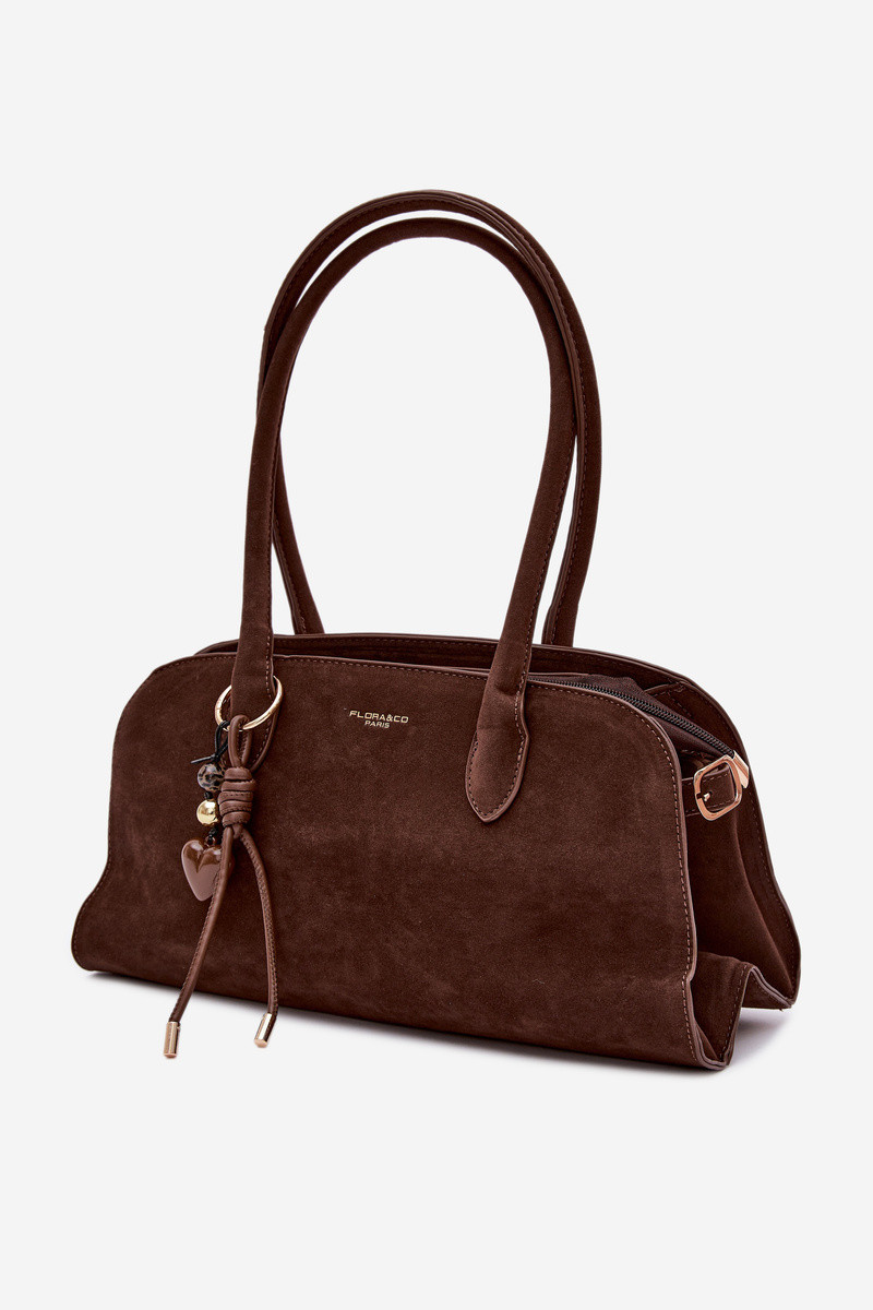 Tasche mit Anhänger und Schnallen aus Kunstsuede in schokoladenbraun Violette