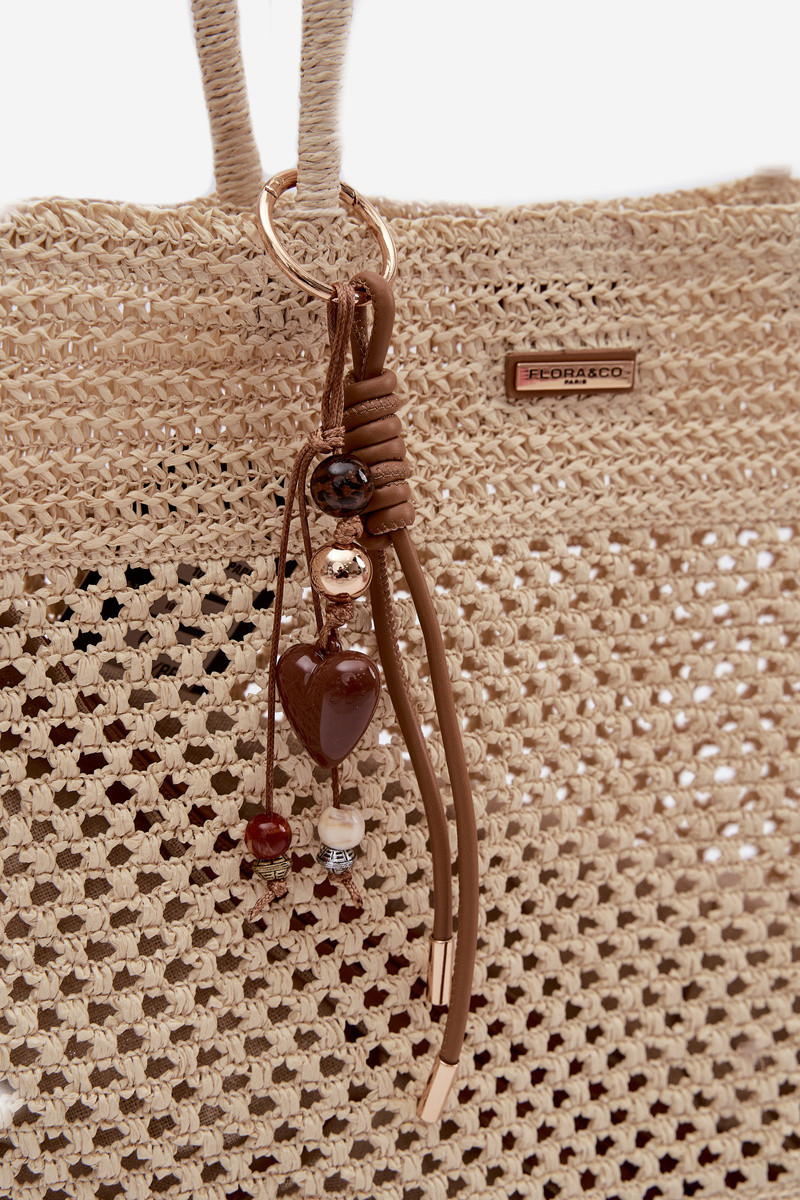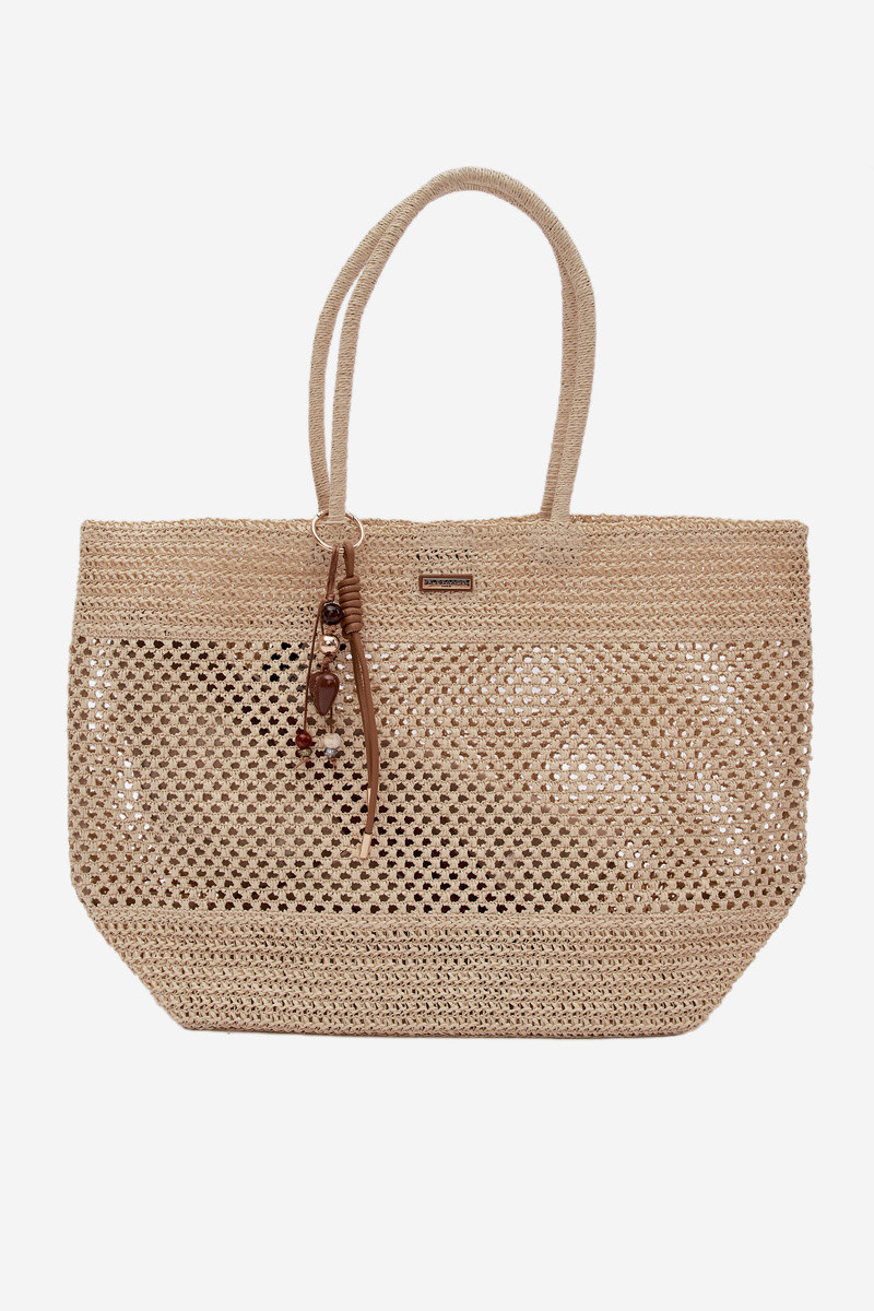 Geflochtene Shopper-Tasche groß mit Anhänger in hellbeige Lucette