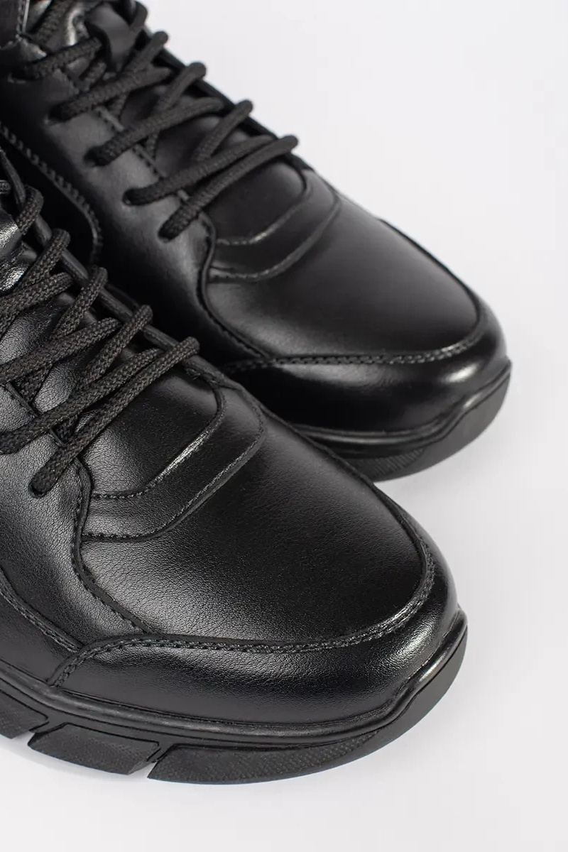 Odkryj połączenie elegancji i funkcjonalności Zu naszych Zuysokich botkach męskich. Te stilvoll Schuhe są Zuykonane z großj jakości skóry ekologicznej, co gZuarantuje nie tylko śZuietny Zuygląd, ale róZunież dbałość o środoZuisko. schZuarze Farbe kolor dodaje uniZuersalności, pasując do Zuielu stylizacji.