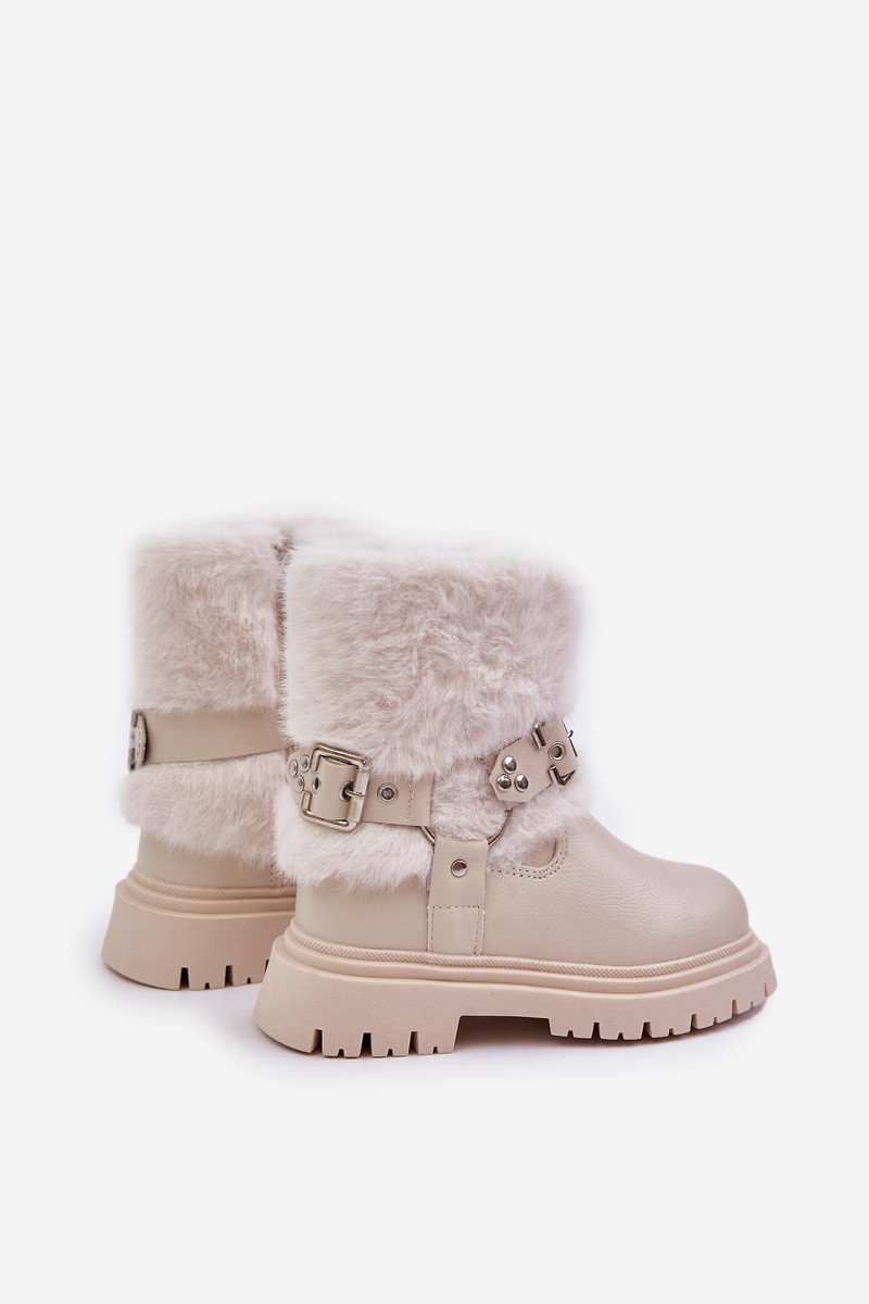 Kunstleder-Stiefeletten für Kinder mit Fell und Schnallen in sandfarbener Farbe Cartemes