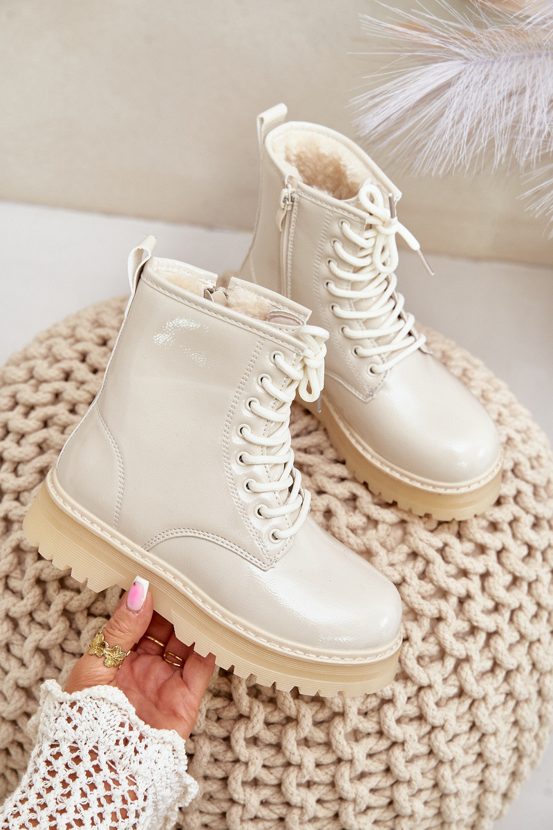 Wärmende Kinderschuhe mit Lackeffekt in sandfarbener Farbe Novita