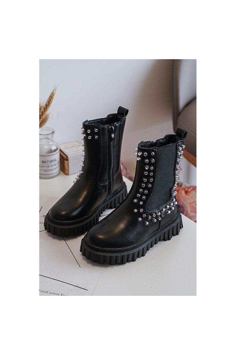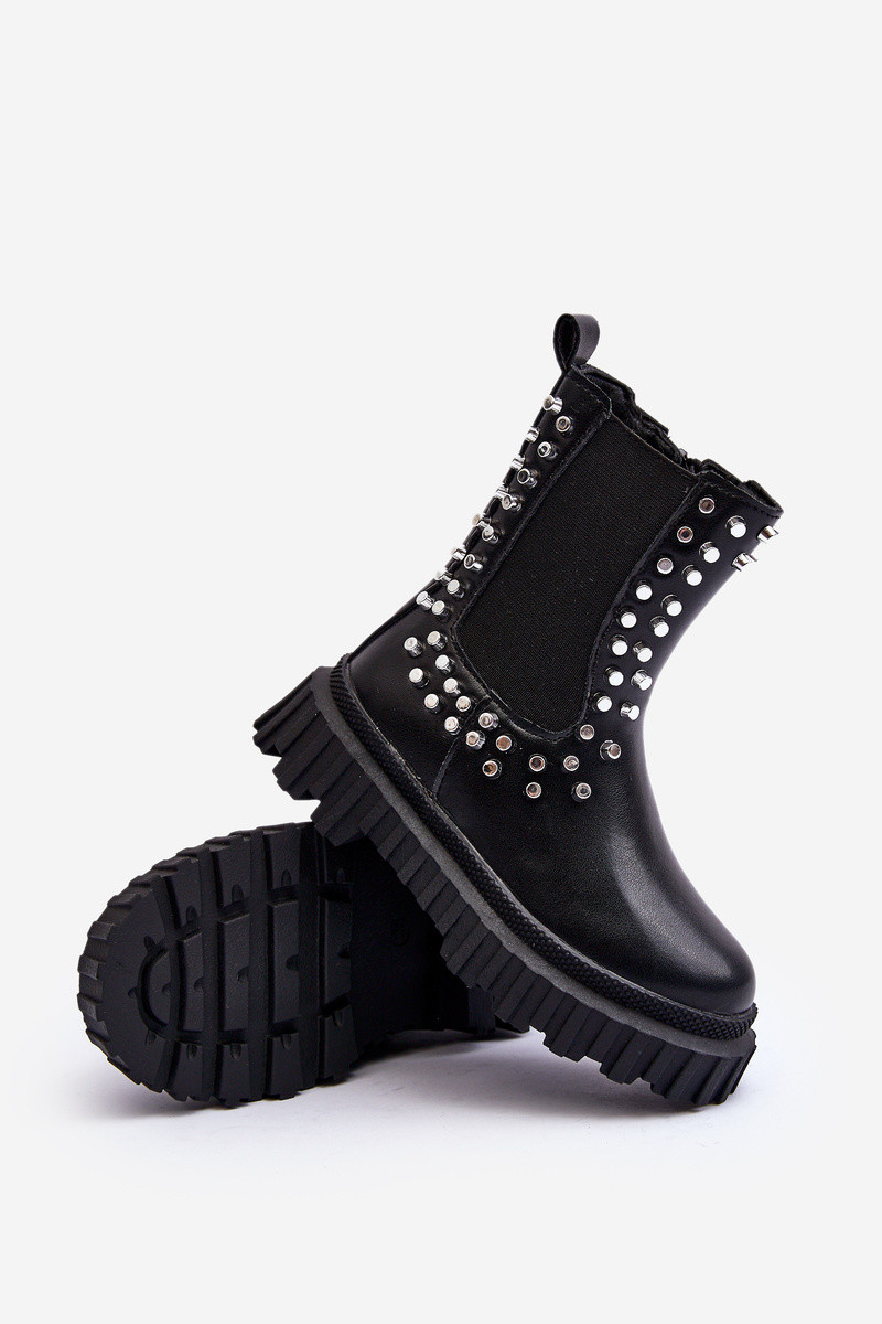 stylische Stiefel Kindisch Dekoriert Mit Strasssteinen schZuarze Farbe Adelie