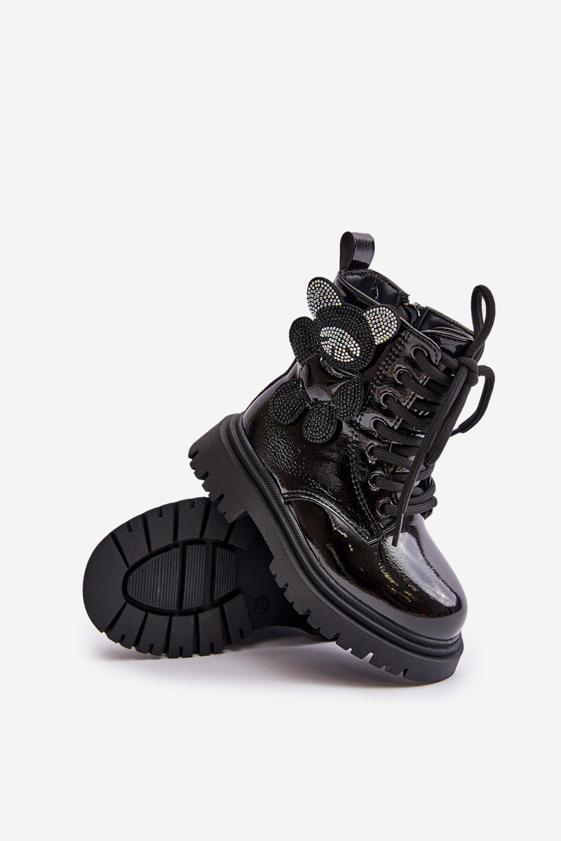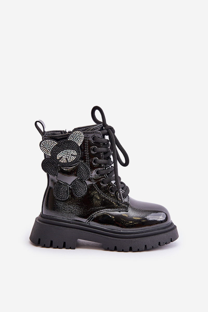 Wärmende Kinderstiefeletten mit Teddybär und Lack-Effekt schwarz Relobia