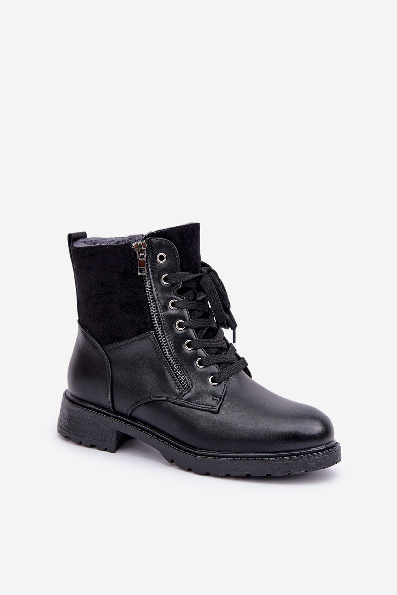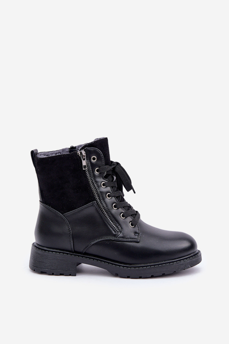 Warm gefütterte Stiefeletten mit breiten Absätzen in schwarzer Farbe aus Kunstleder