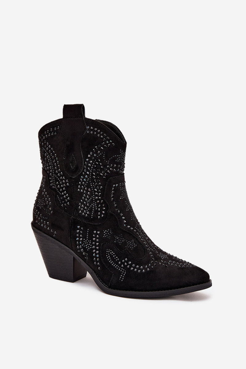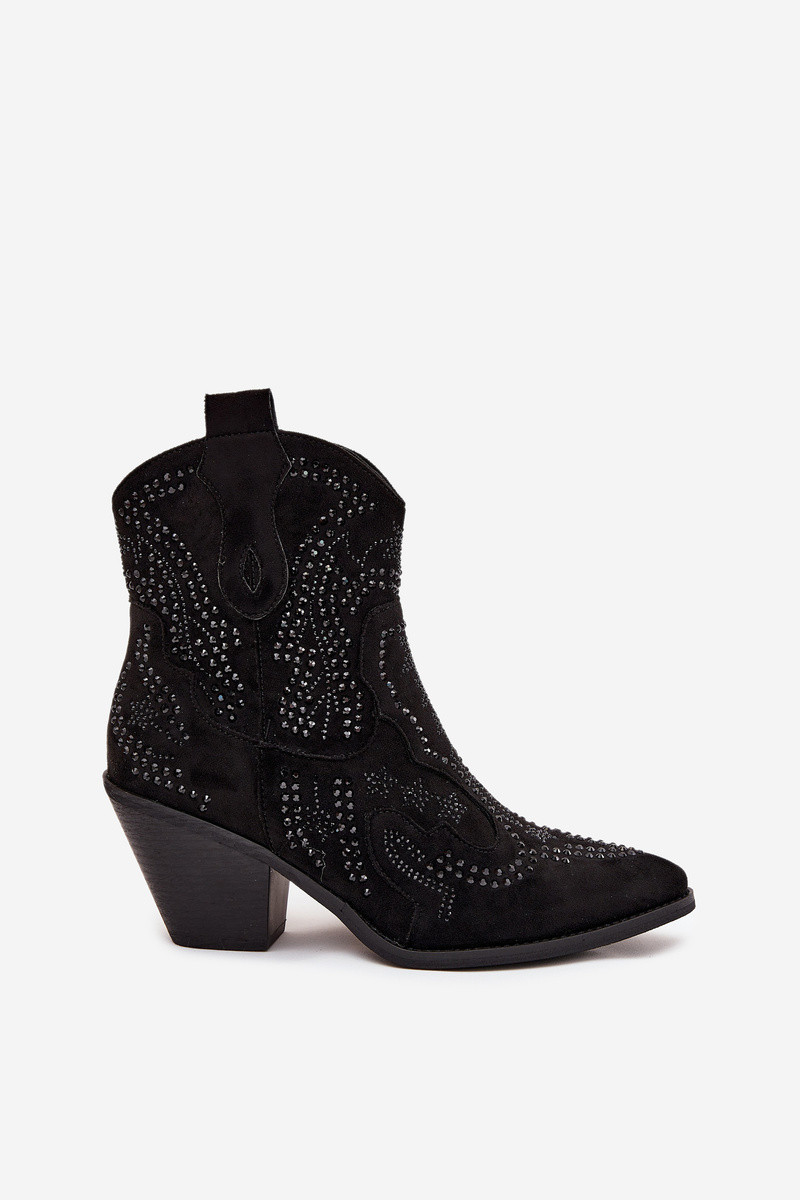 Wärmende Damen Cowboy-Stiefeletten mit Dekoration, schwarze Farbe Lelira