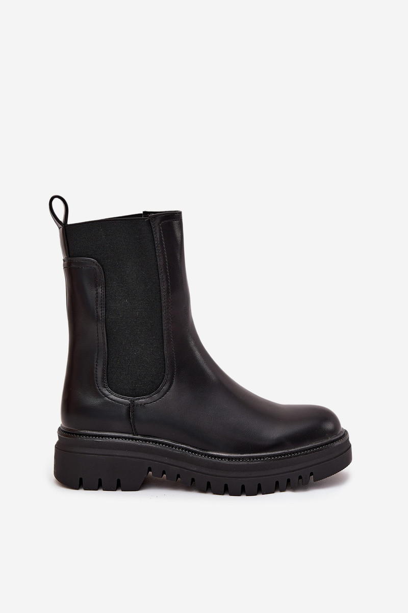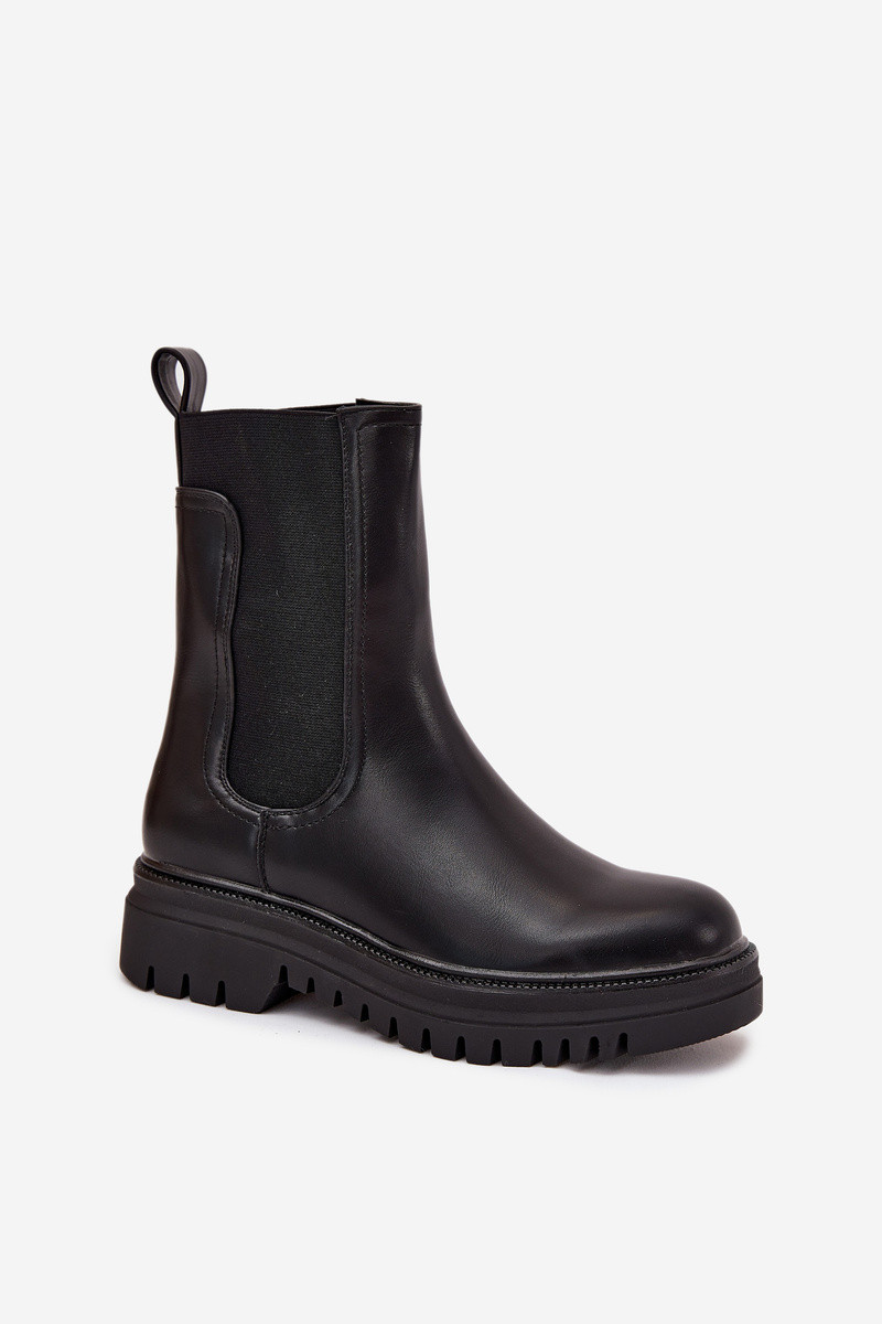Stilvolle Damen Stiefeletten mit Plattform und flachem Absatz, Schlupfmodell, in Schwarz Ravessa