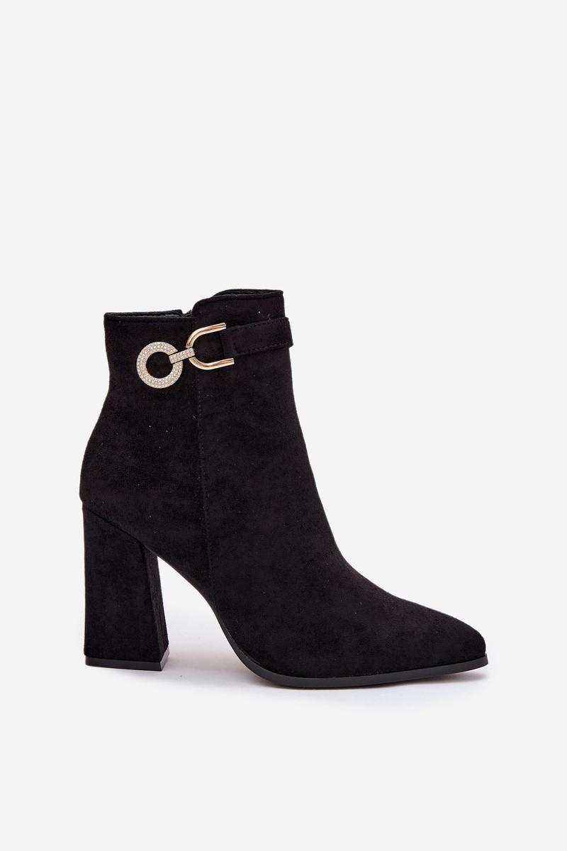 Lymall Schwarze Kunstwildleder-Stiefeletten mit Ornamenten auf Absatz