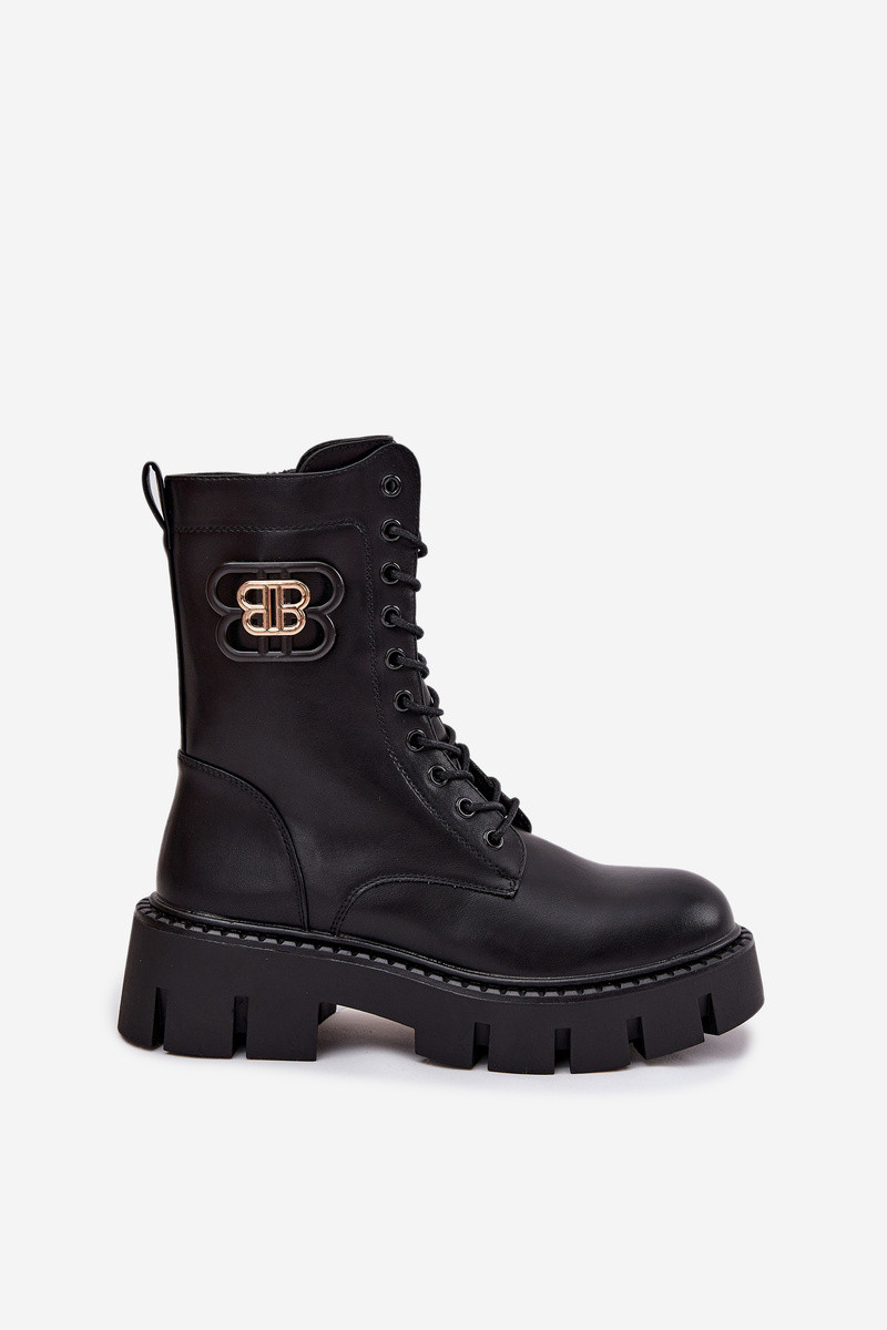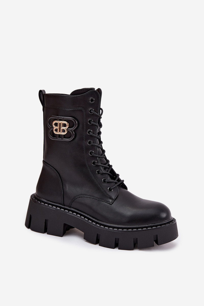 Warm gefütterte Damenstiefeletten und Noker mit Ornamenten in schwarz Melisse