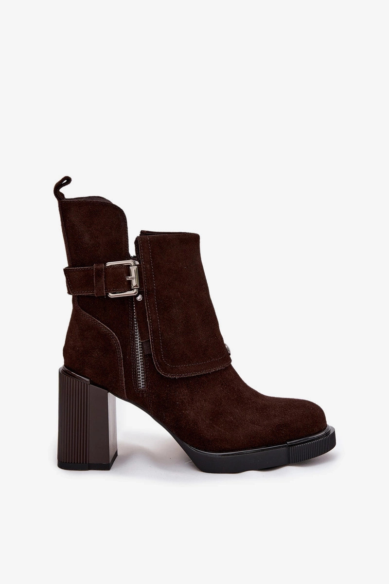 Stiefeletten aus natürlichem Wildleder mit Absätzen und Schnallen, Vinceza 91152, schokoladenfarben