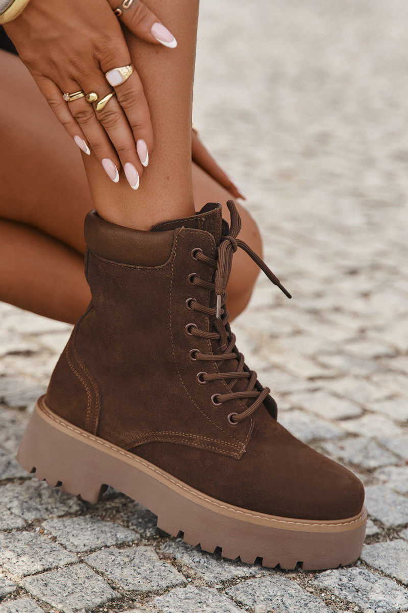 Damen-Stiefel aus Ziegenvelours mit Schnürung Big Star SS274792 in Braun