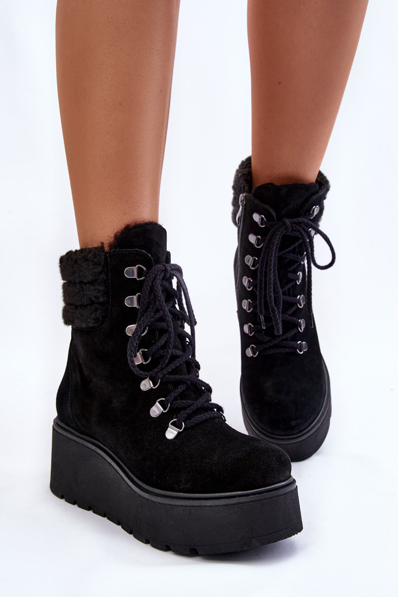 Feminin INildlederschuhe Auf einem Keil schZuarze Farbe Lemar Meniko
