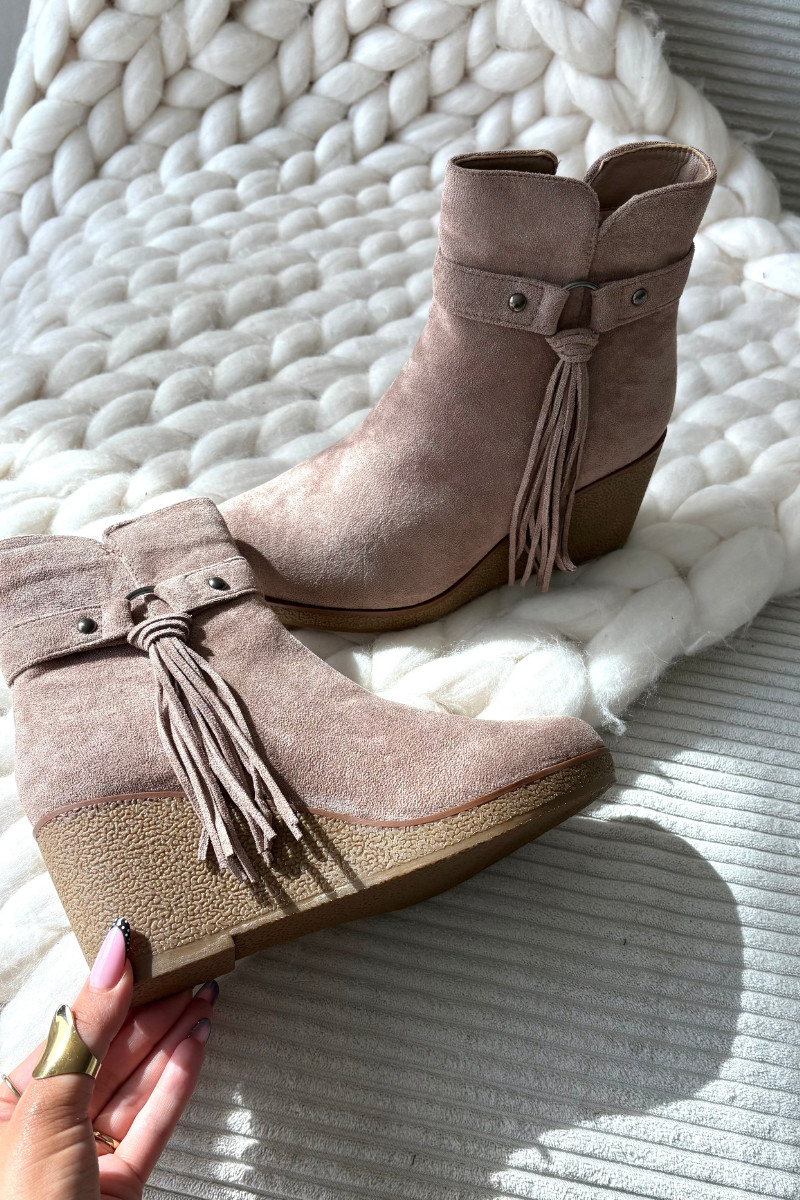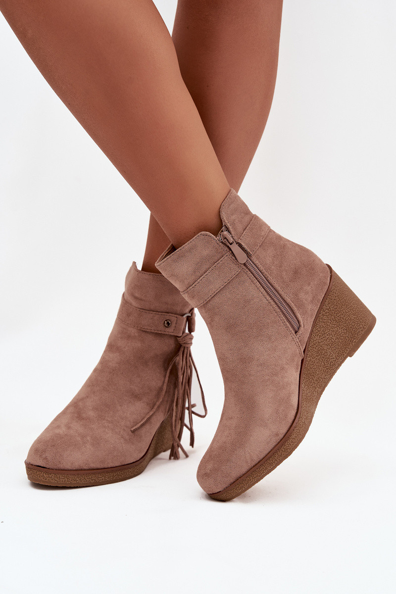 sich Zuarm laufen Damenstiefel Auf einem Keil mit Fransen Beige Olivarae