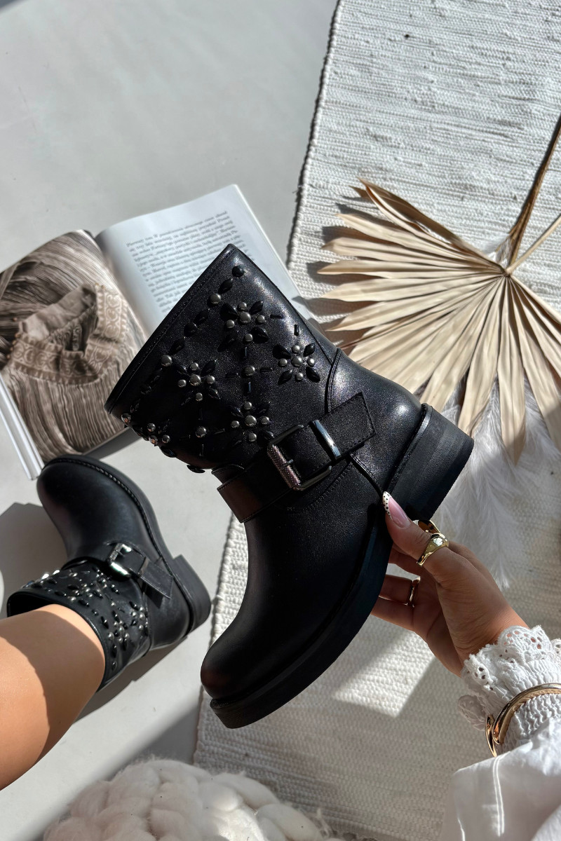 Dekoriert Damenstiefel mit Schnallen schZuarze Farbe Mivana