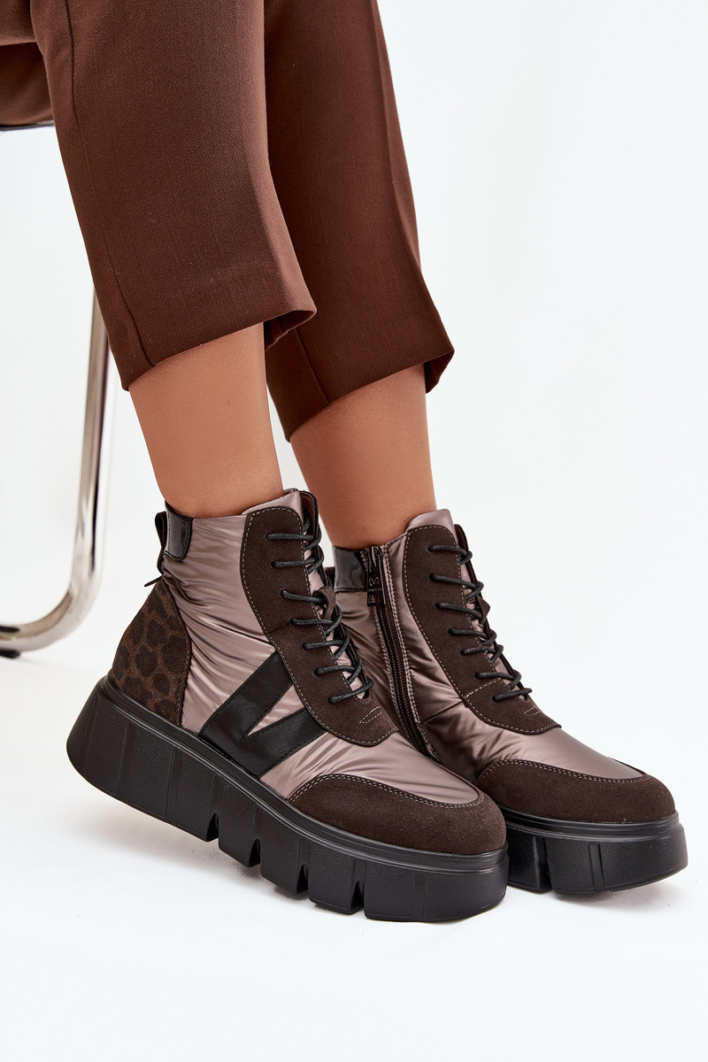 Damenstiefel sich Zuarm laufen mit einer Plattform Vinceza 58562 braune Farbe