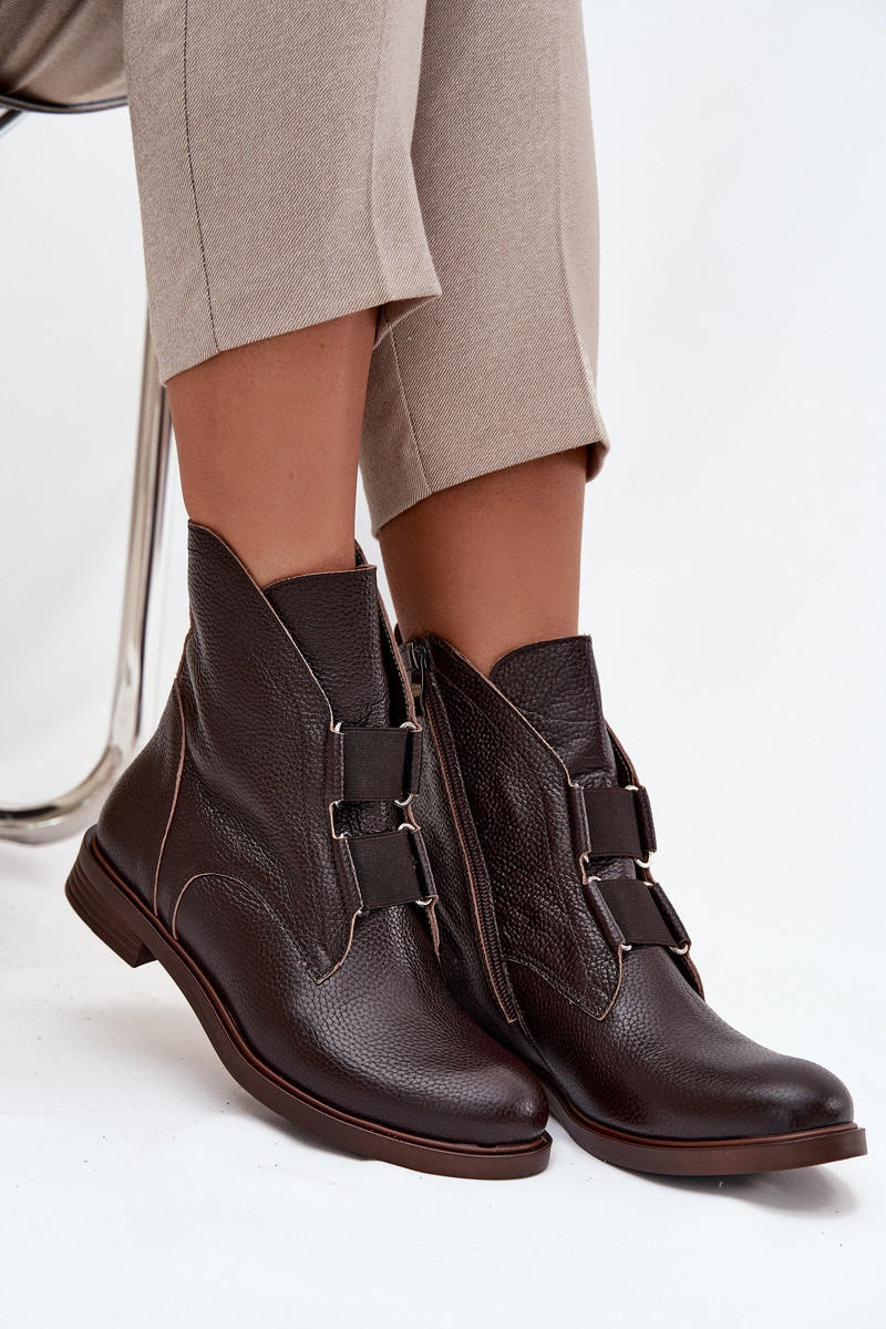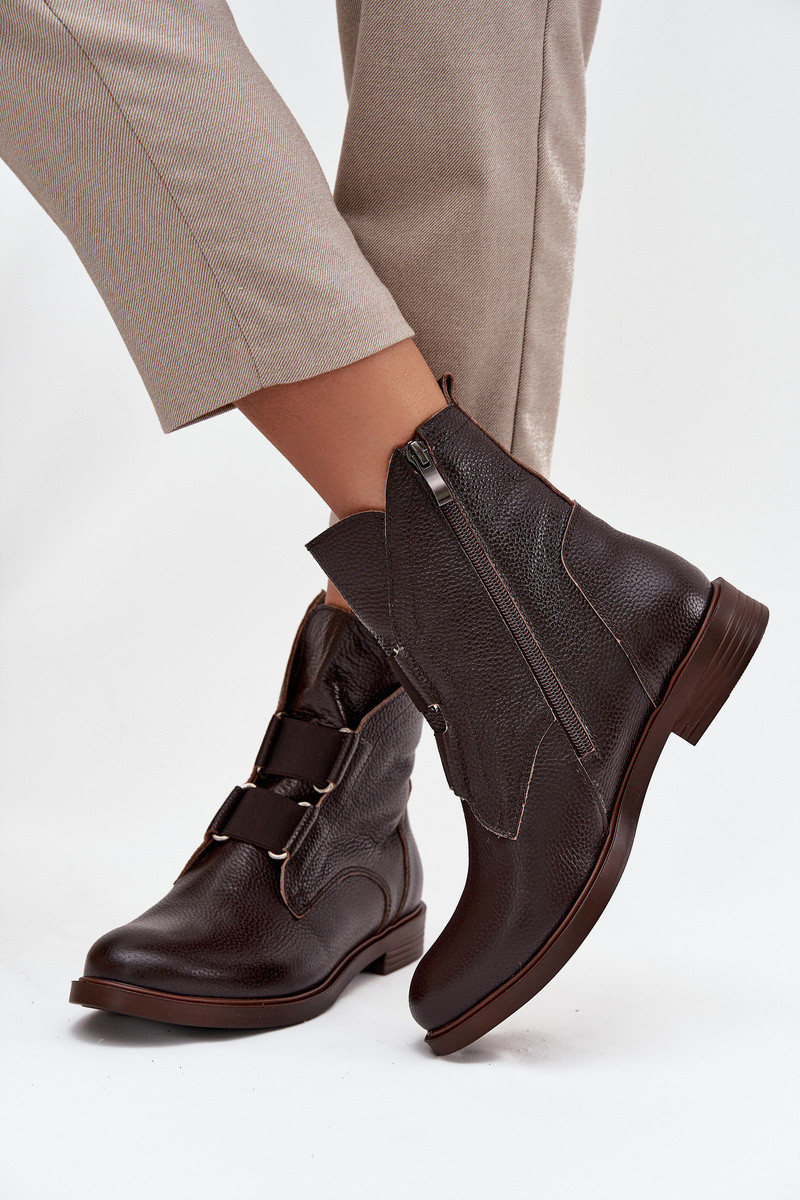 DamenstiefelErmöglichtturalnej Skóry mit breiten Absätzen Zazoo 3842 CzekoladoZue