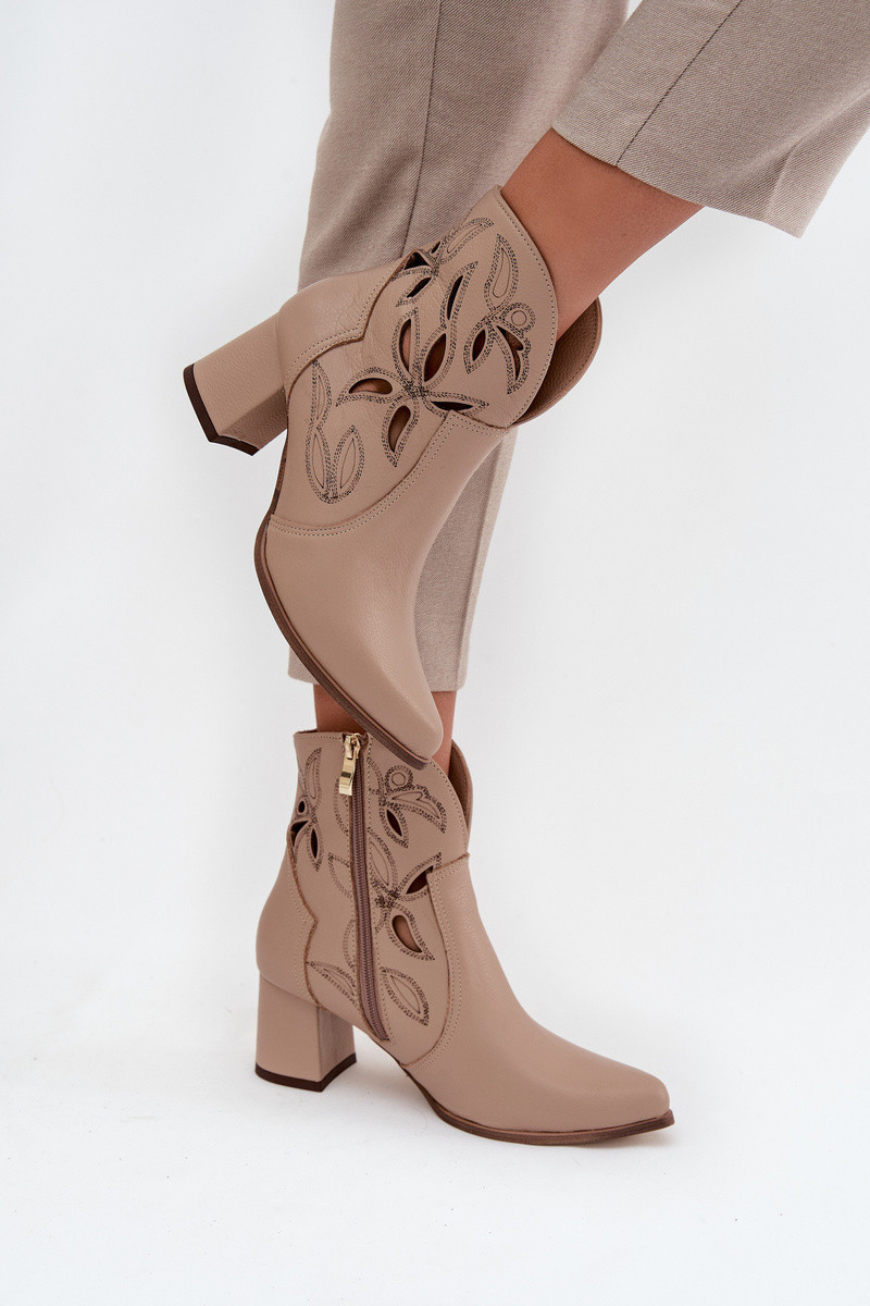 Haut mit durchbrochenen Elementen Damenstiefel Zazoo 3647 elfenbeinfarbe