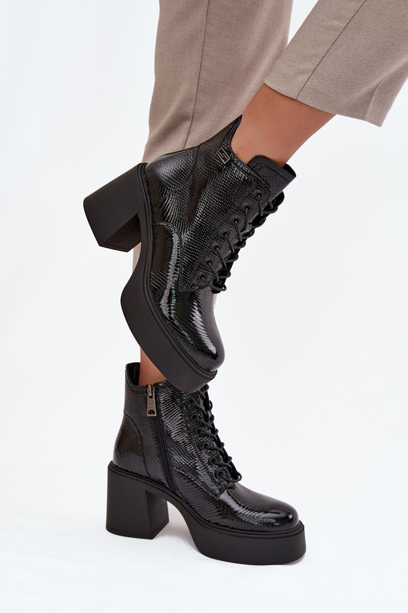 mit Lackeffekt Haut Damenstiefel mit einer Plattform I Aufzeichnen Vinceza 66817 schZuarze Farbe