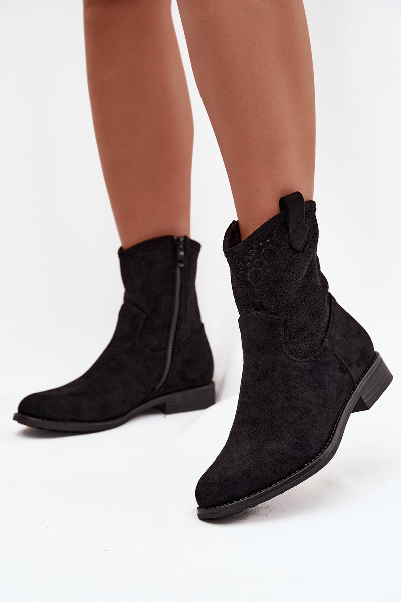 Damenstiefel mit breiten Absätzen mit durchbrochenen Elementen S.Barski HY52-530 schZuarze Farbe