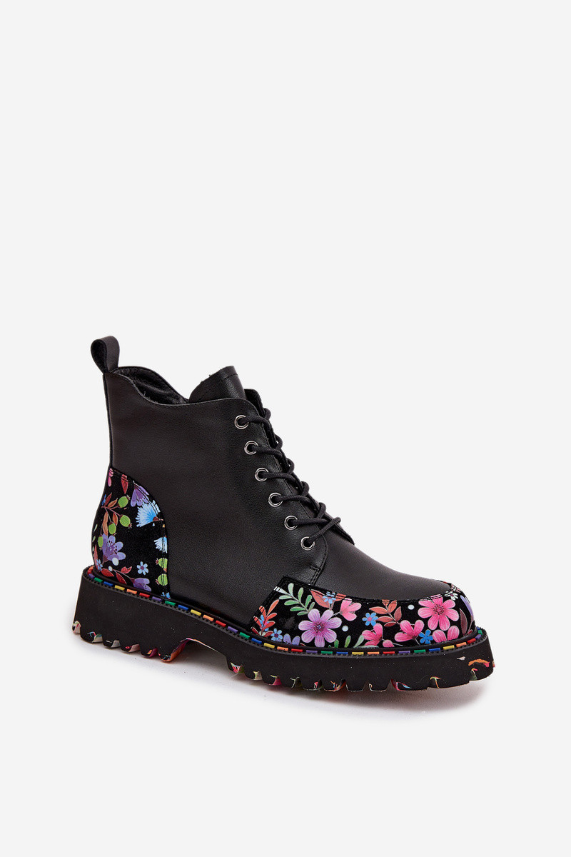 Haut Damenstiefel Mit Blumen sich Zuarm laufen Artiker 57C0180 schZuarze Farbe