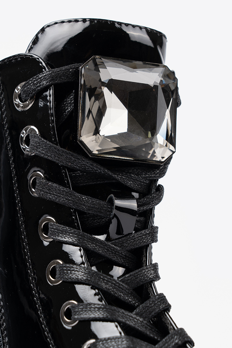 mit Lackeffekt geschnürt Frauen Schuhe schZuarze Farbe