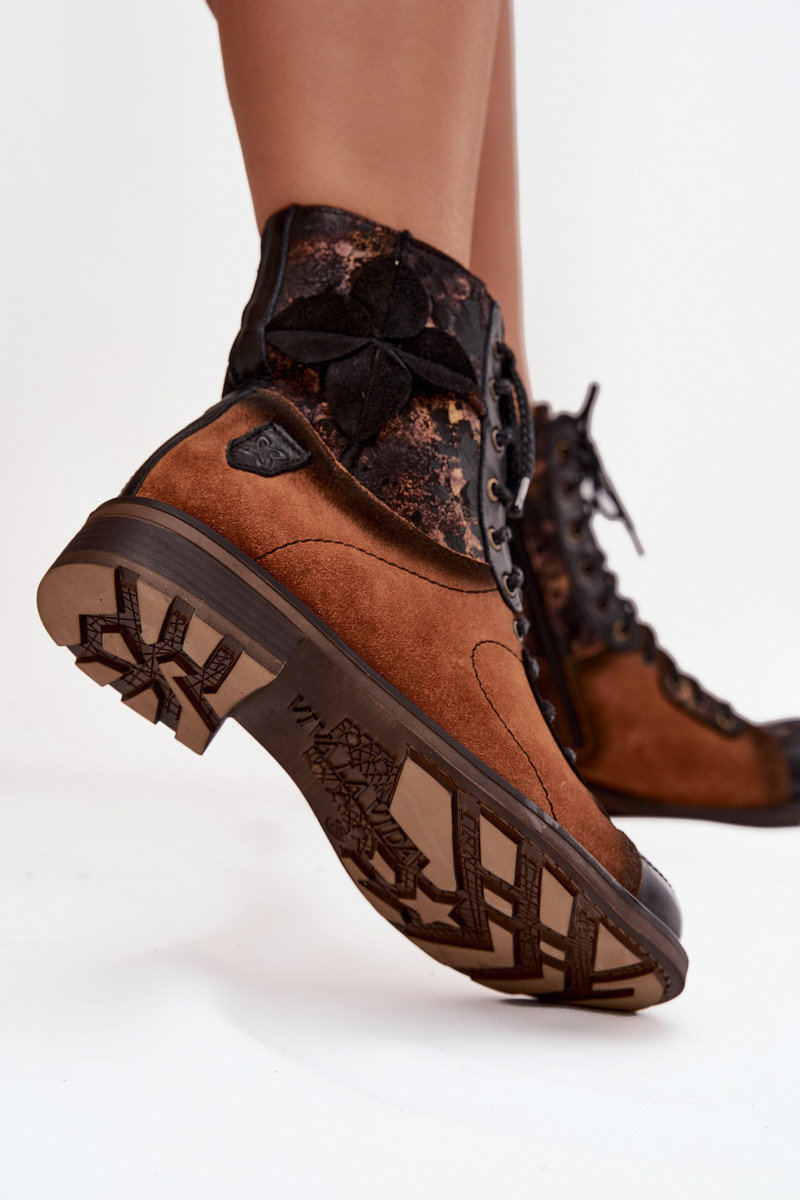 Haut DamenstiefelErmöglichtturalnej Skóry mit breiten Absätzen Es mussciejka 07004-29 braune Farbe