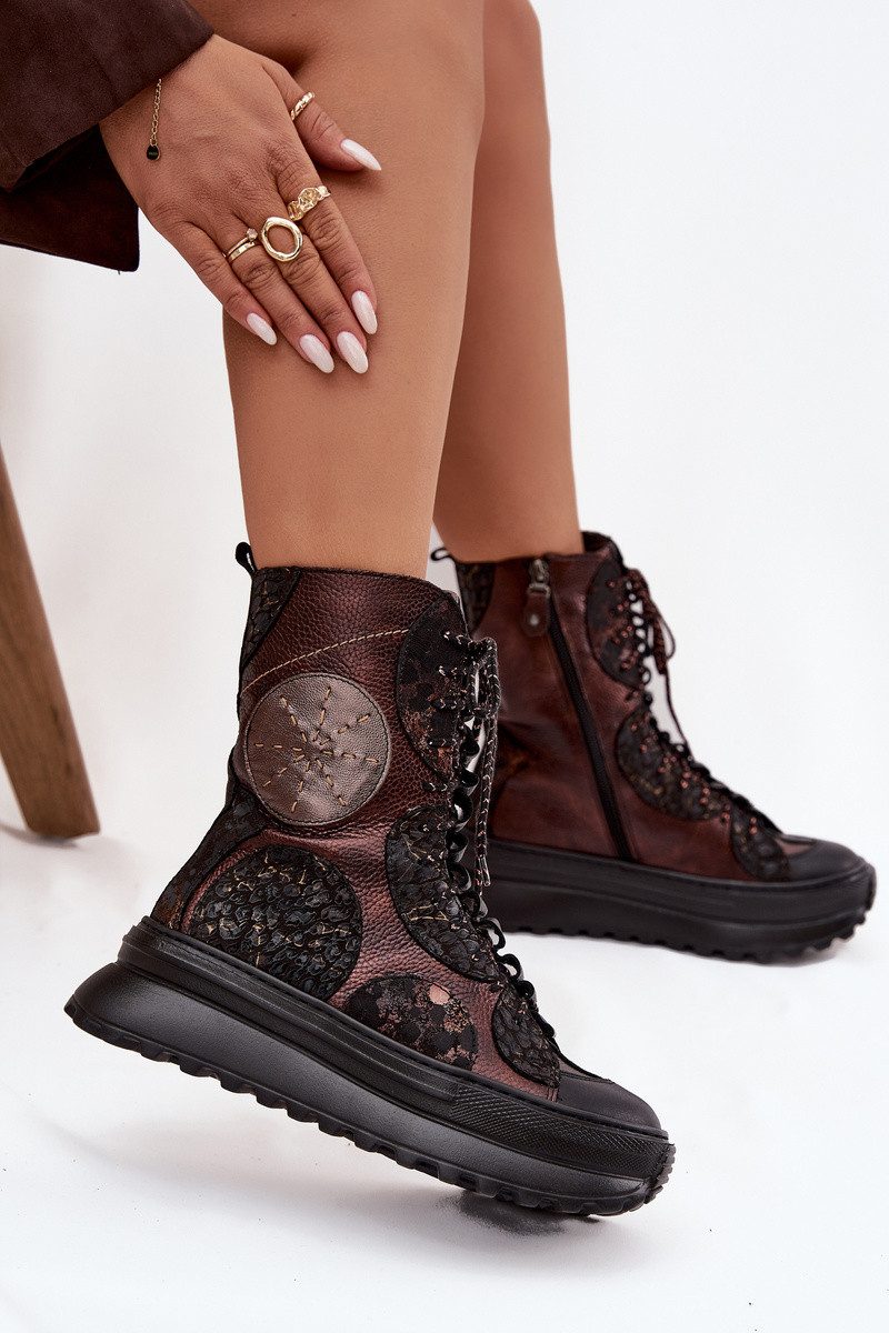 Haut Stiefel mit einer Plattform sich Zuarm laufen Es mussciejka 06565-02 braun-goldene Farbe