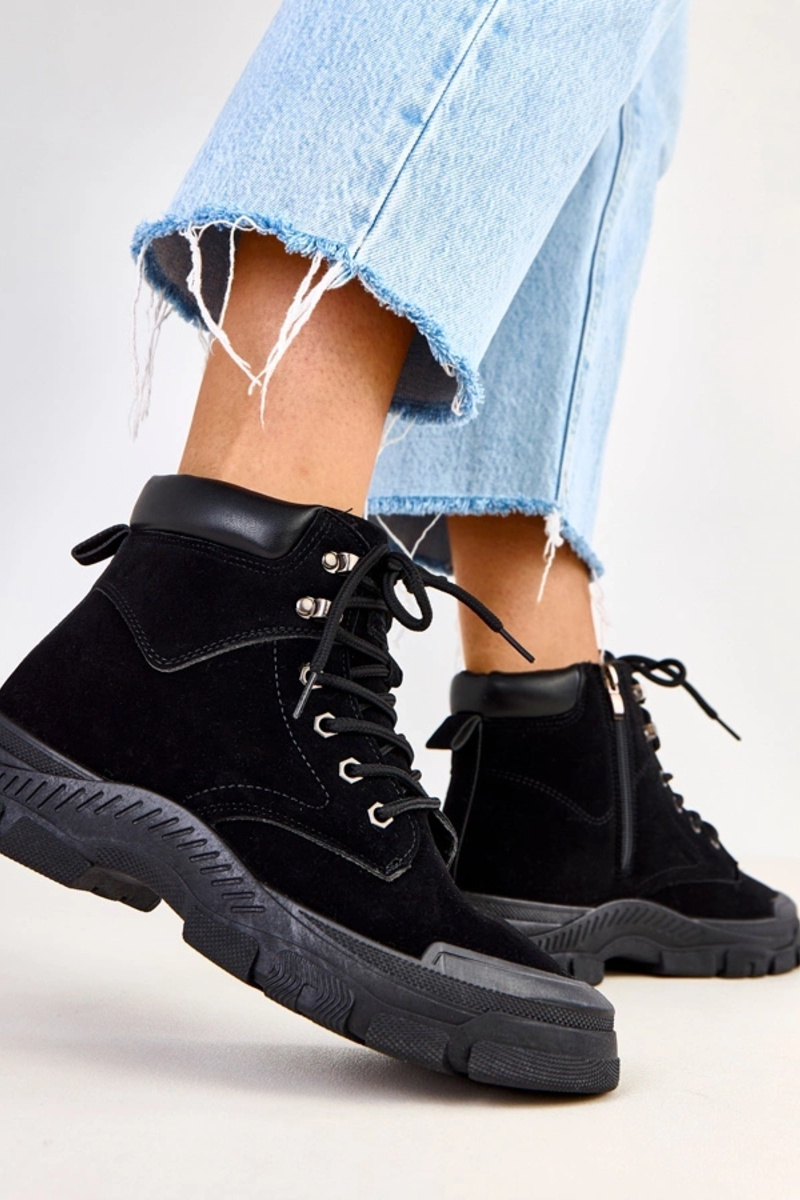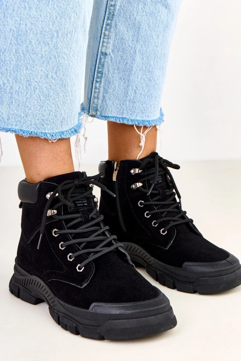 Schwarze Damen Stiefel aus Kunstwildleder Eliada