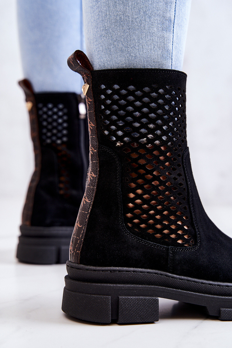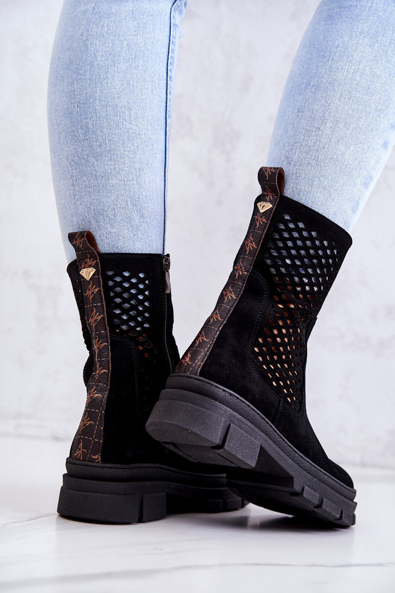 Leder Arbeitsknöchelstiefel Nicole in Schwarz 2711