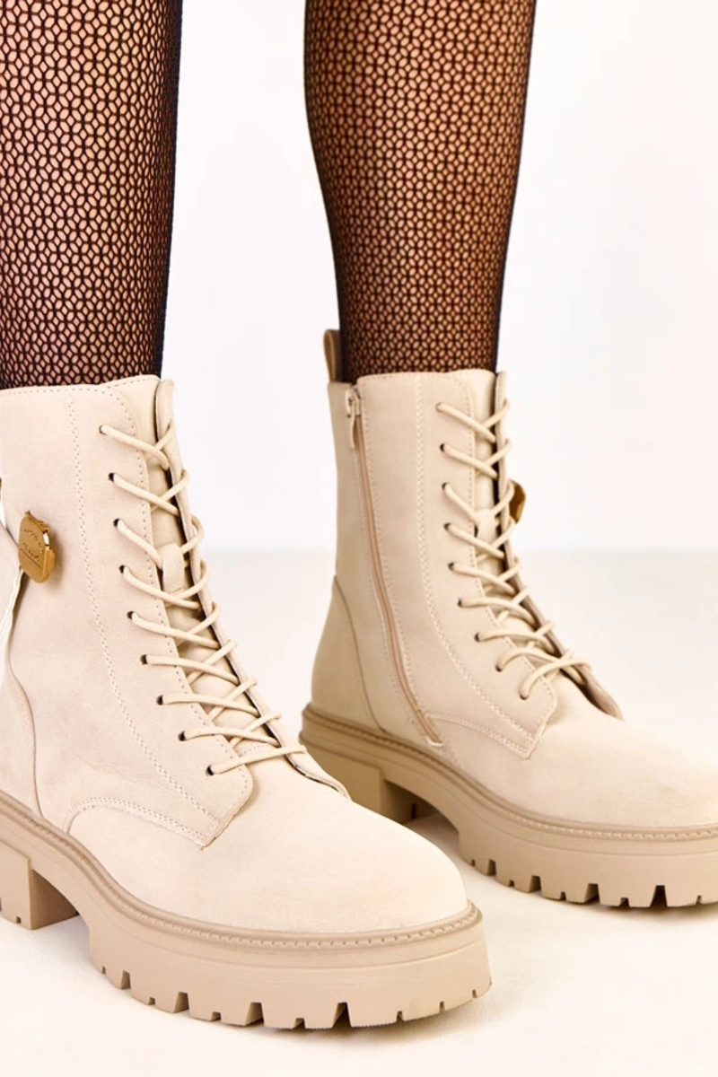 Sandfarbene Damen-Trekkingschuhe mit goldenem Bären Valery