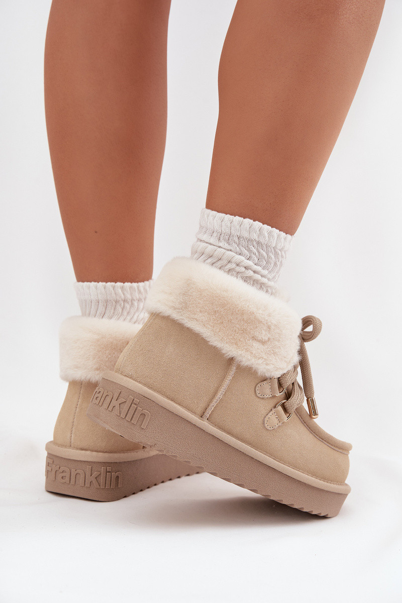 Elfenbeinfarbene Damen-Schneestiefel aus echtem Wildleder D.Franklin DFSH375006