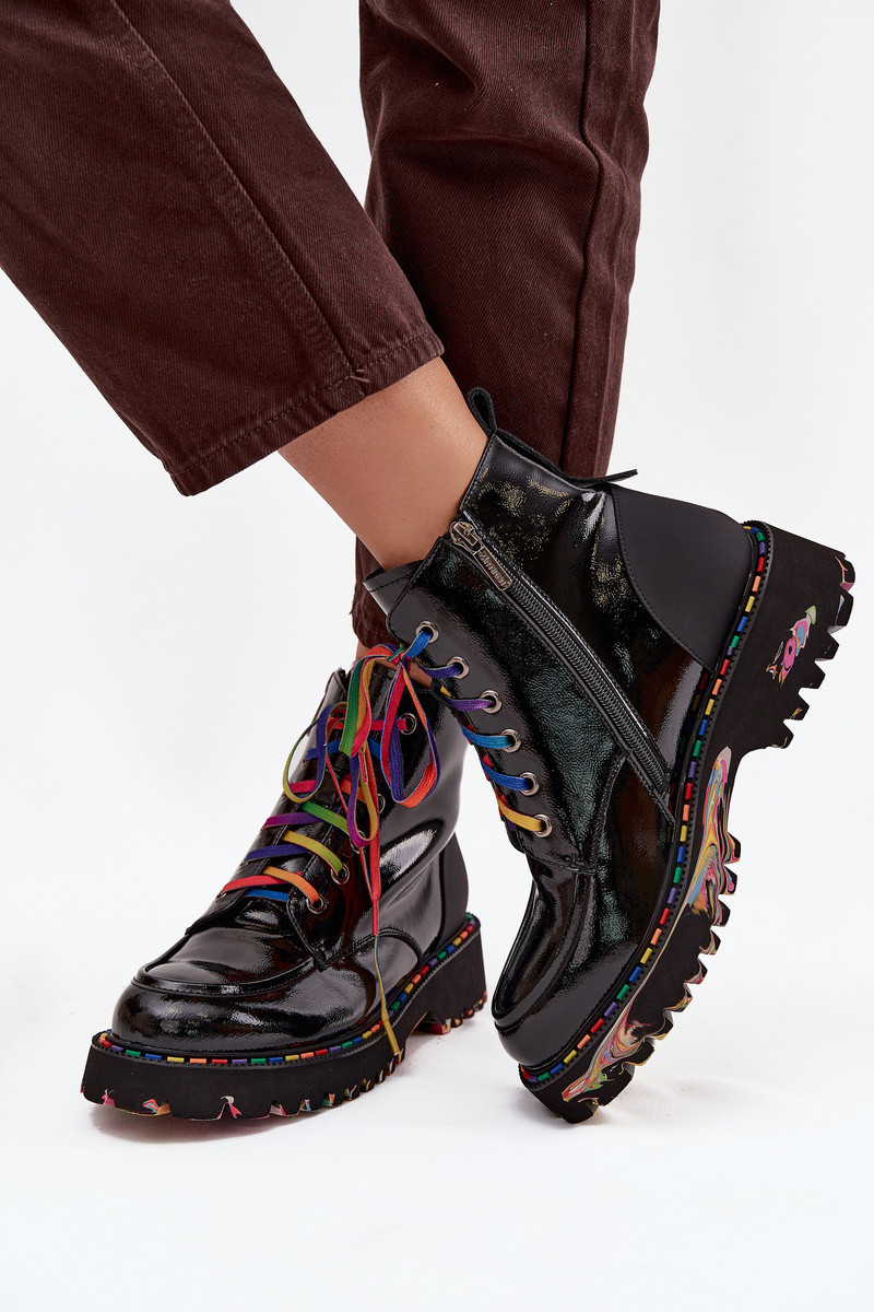 Haut mit Lackeffekt Damenstiefel Artiker 57C0064 schZuarze Farbe
