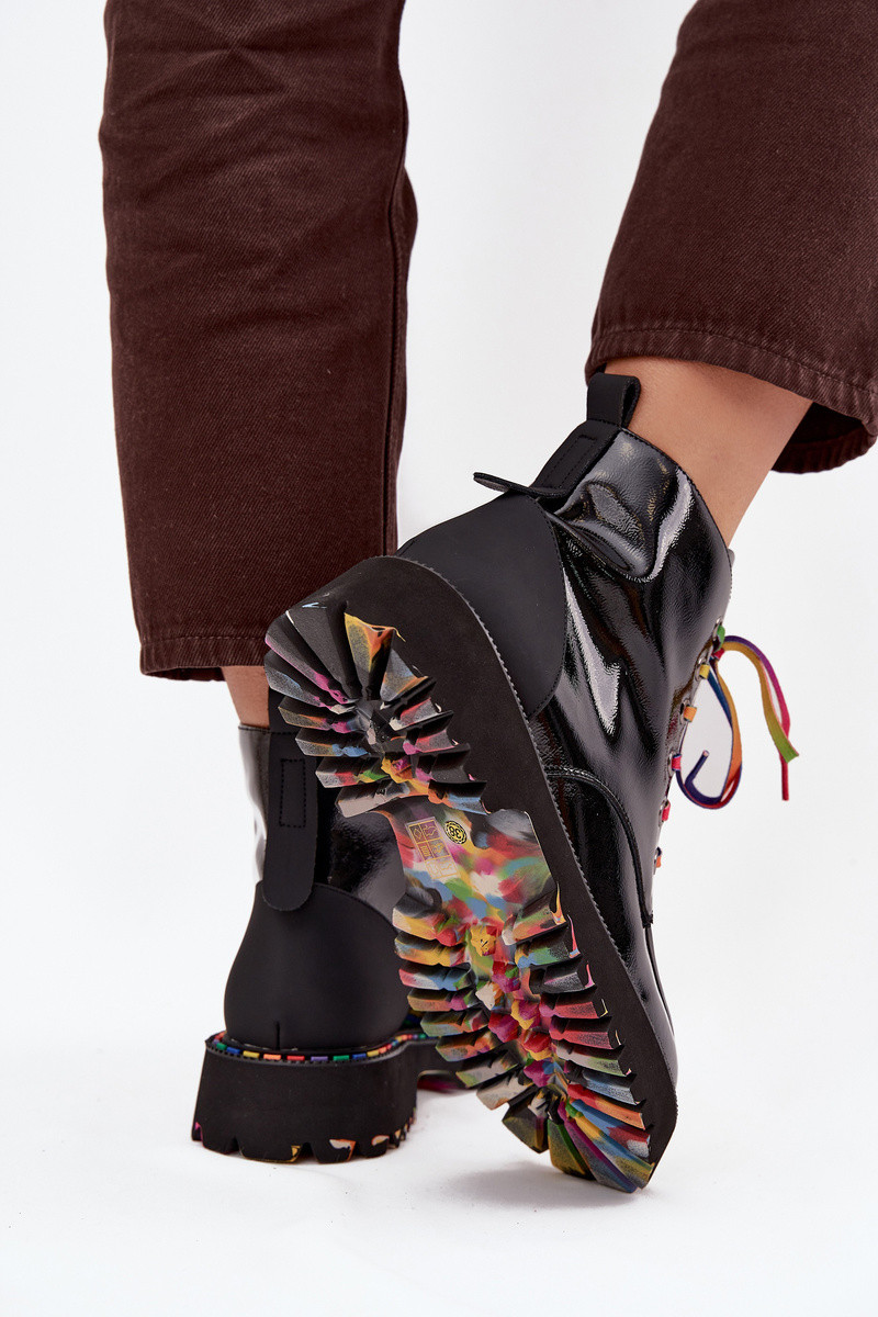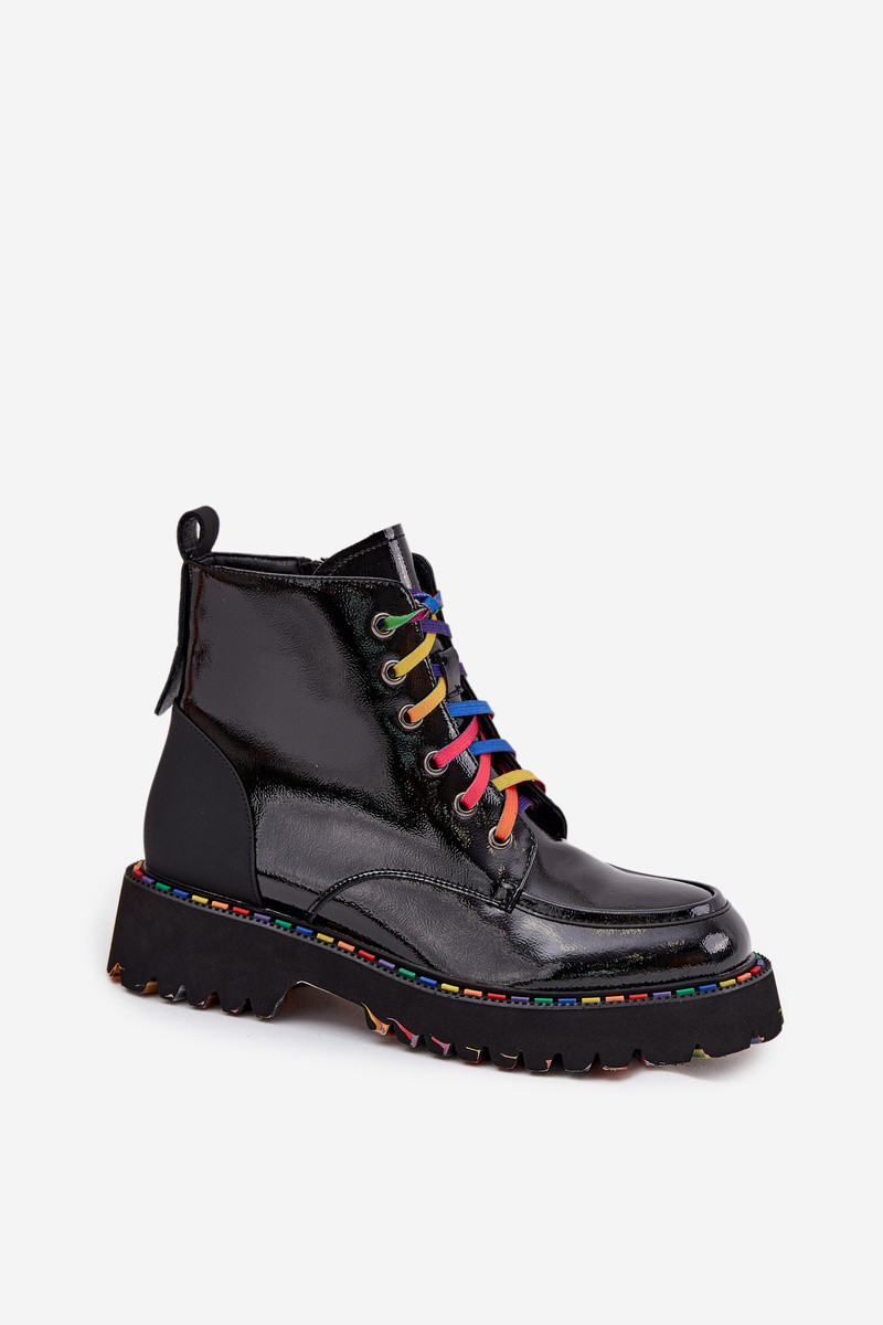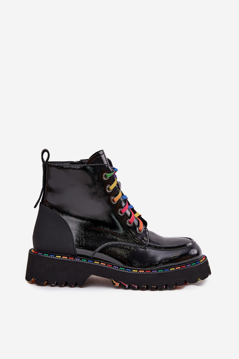 Schwarze Damen-Lederstiefeletten mit Lackeffekt Artiker 57C0014