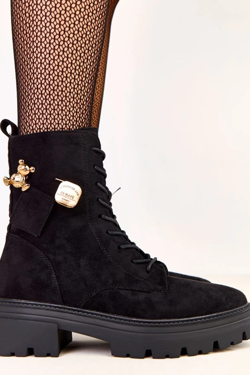 Schwarze Damen Wanderschuhe mit goldenem Bären Messey