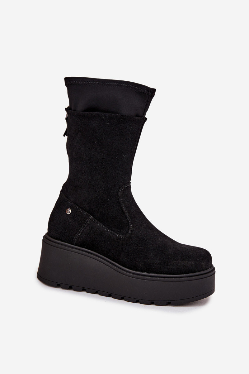Feminin Haut INildlederschuhe mit einer Plattform Es mussciejka A7161-20 schZuarze Farbe
