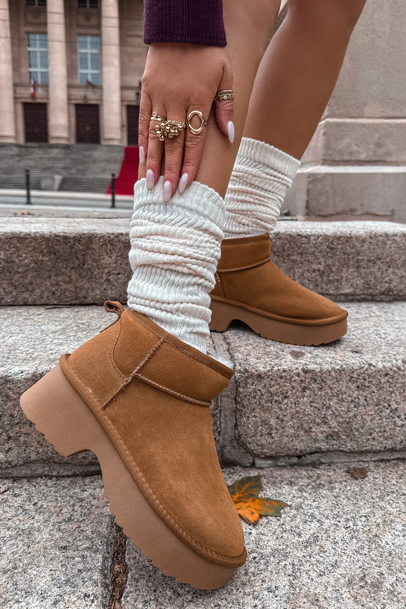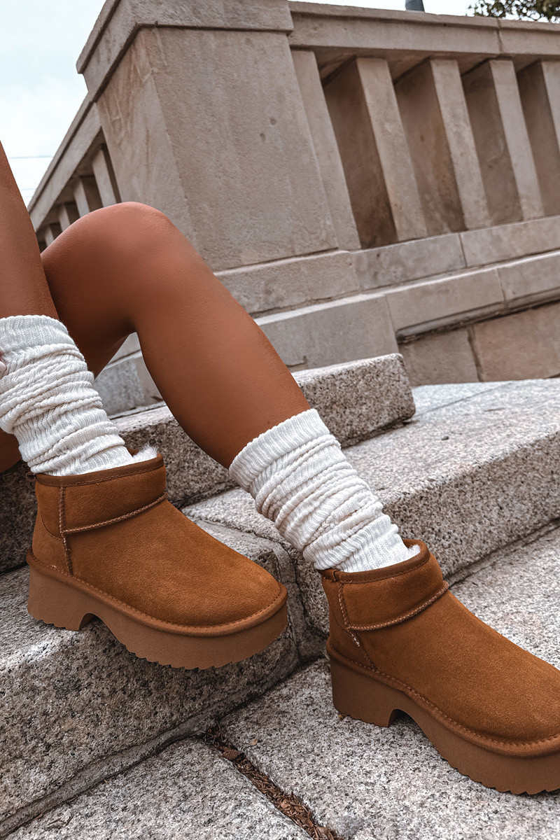 Damen Schnee Stiefel aus natürlichem Wildleder gefüttert mit Fell im Inneren in brauner Farbe Milora