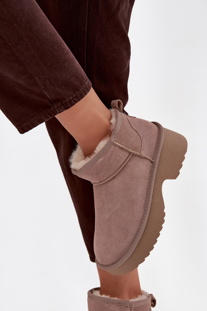 Damen Schnee Stiefel aus natürlichem Wildleder gefüttert mit Fell im Inneren in chaki Farbe Milora