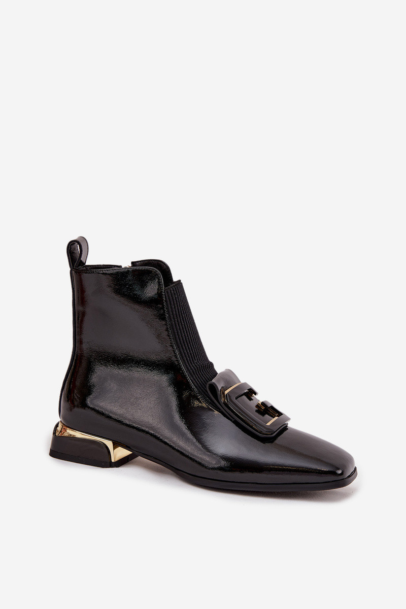 Haut mit Lackeffekt Damenstiefel Auf niedrigem Absatz mit Ornamenten D&A MR52-216 schZuarze Farbe