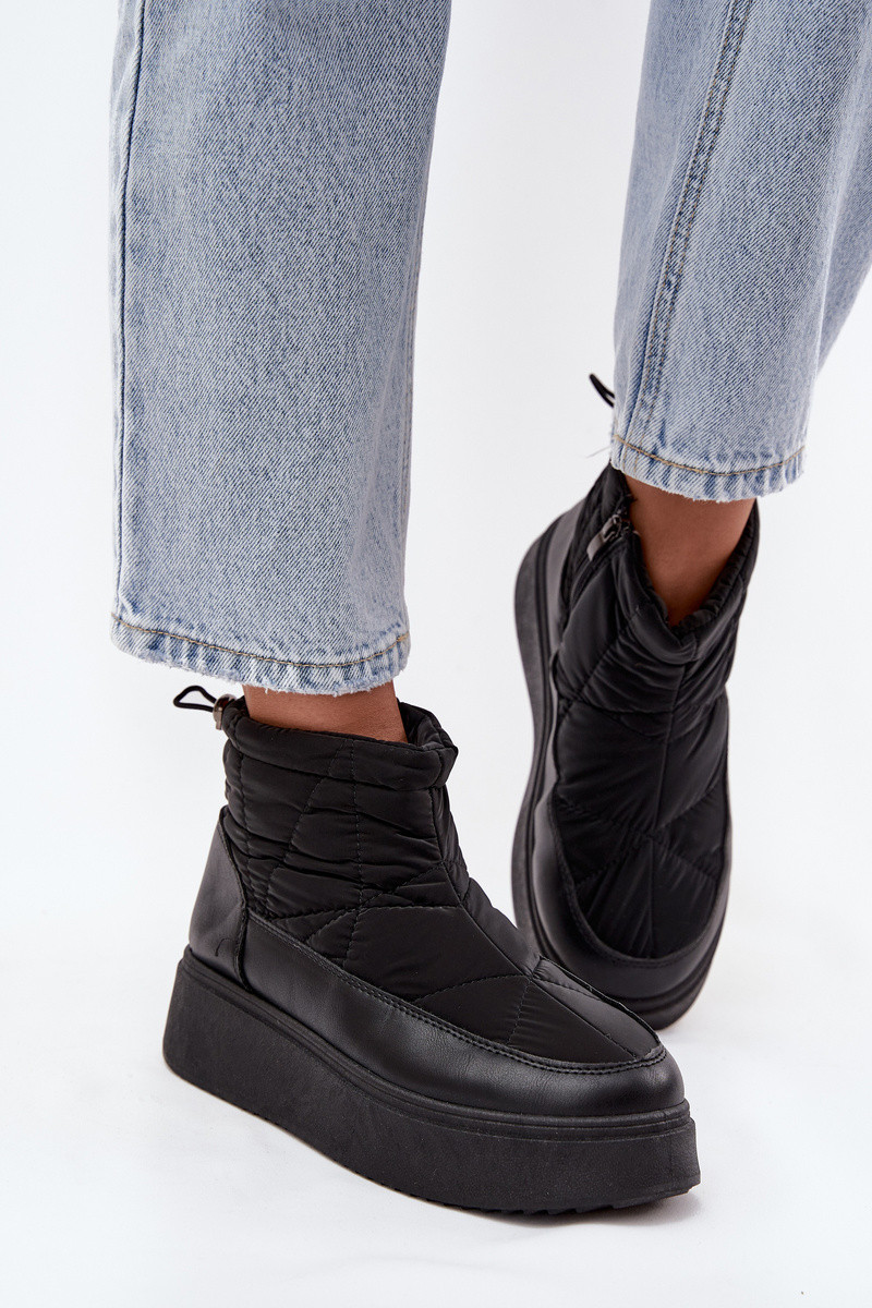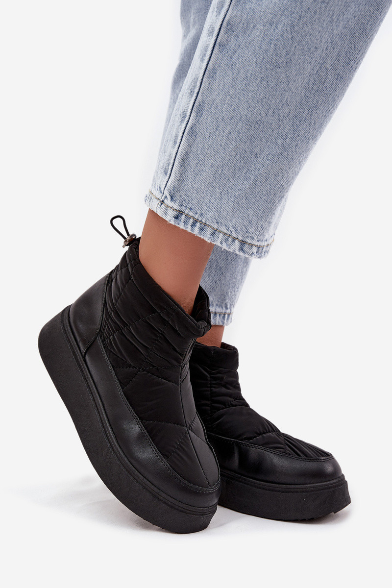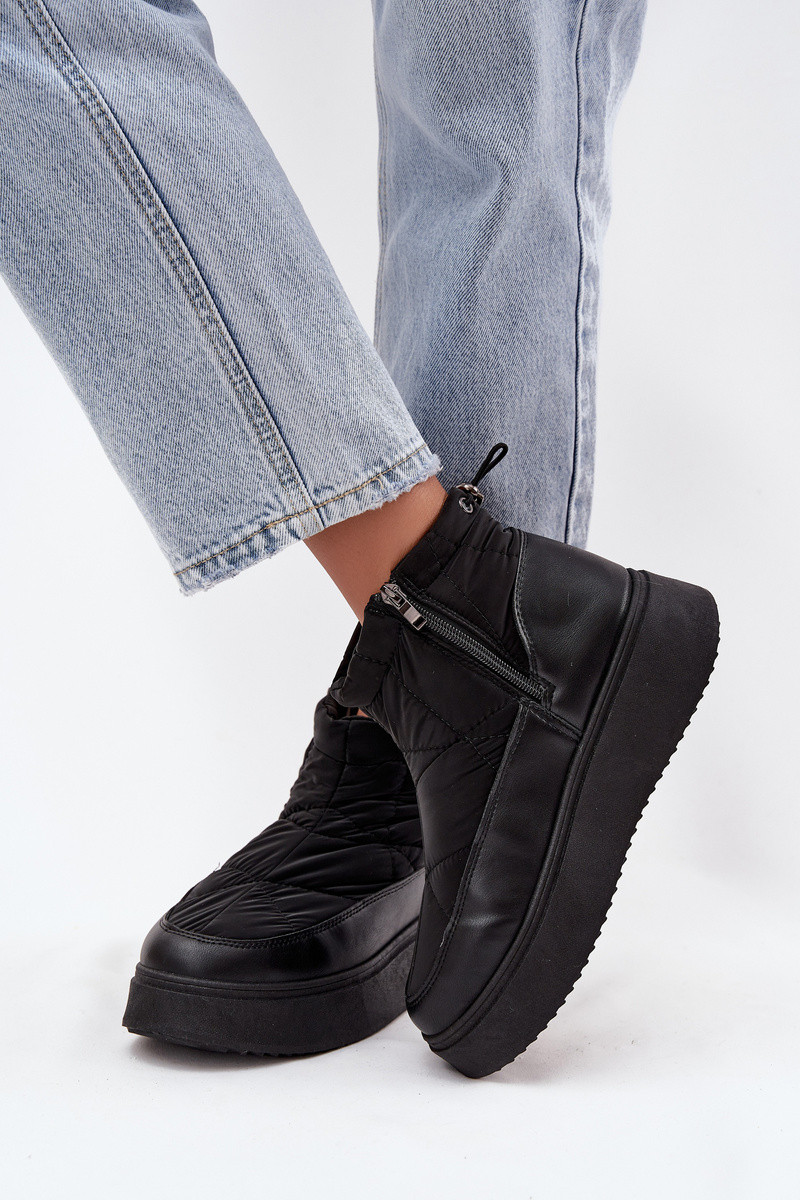Schneestiefel Feminin mit einer Plattform sich Zuarm laufen mit Fell innen schZuarze Farbe Tahlira