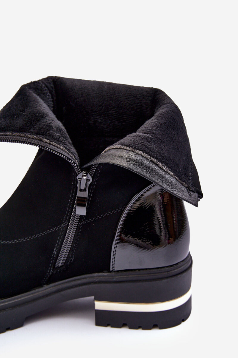 Leder klassische Stiefeletten mit breiten Absätzen in Schwarz Shendete