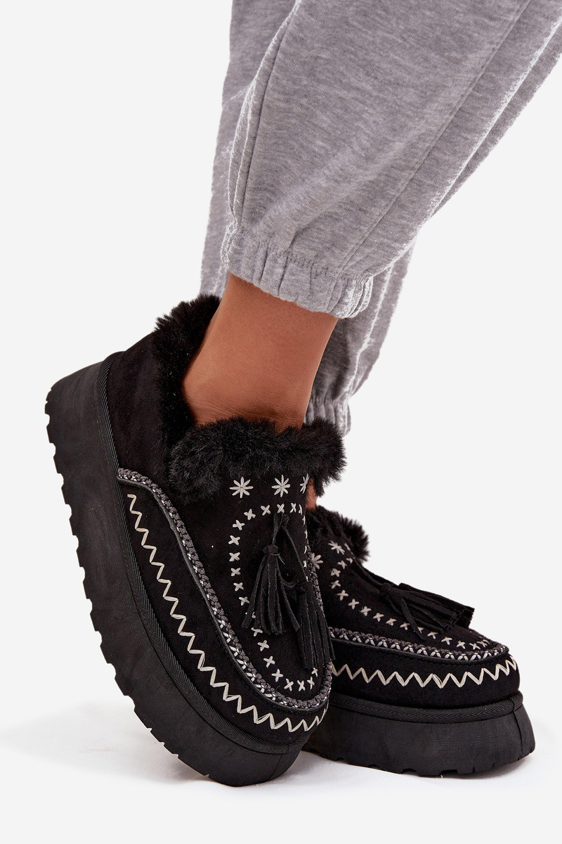 Damen Schneestiefel mit Plateau, Fell und Quasten in Schwarz Ferayne