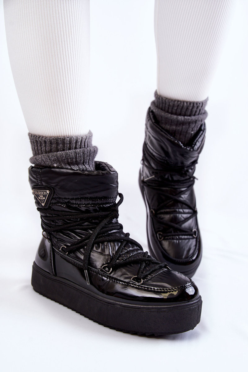 Damen stilvolle Schneestiefel mit Schnürung in Schwarz Carrios